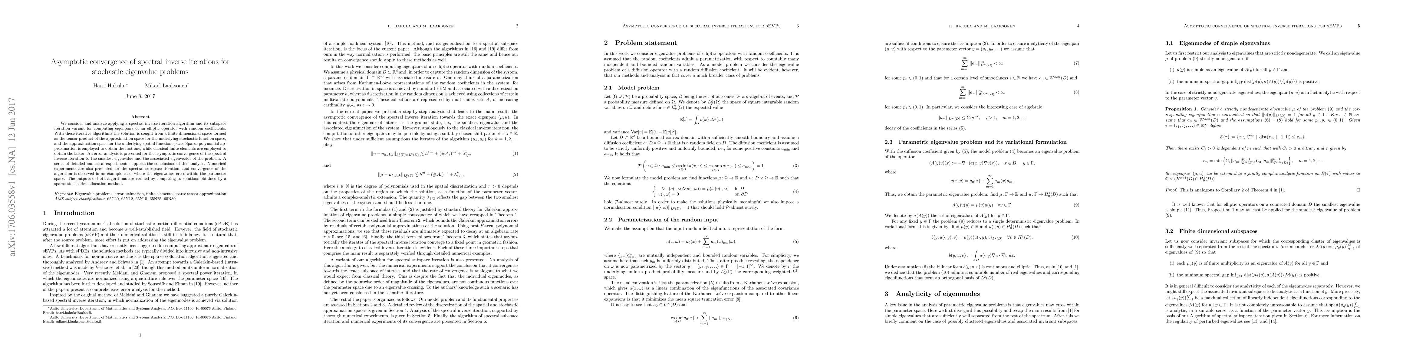 This paper investigates the asymptotic convergence of spectral inverse iteration algorithms for solving stochastic eigenvalue problems involving elliptic operators with random coefficients. The study employs sparse polynomial approximation and classical finite elements, and presents an error analysis and numerical experiments confirming the convergence of the algorithms to the smallest eigenvalue and its eigenvector.