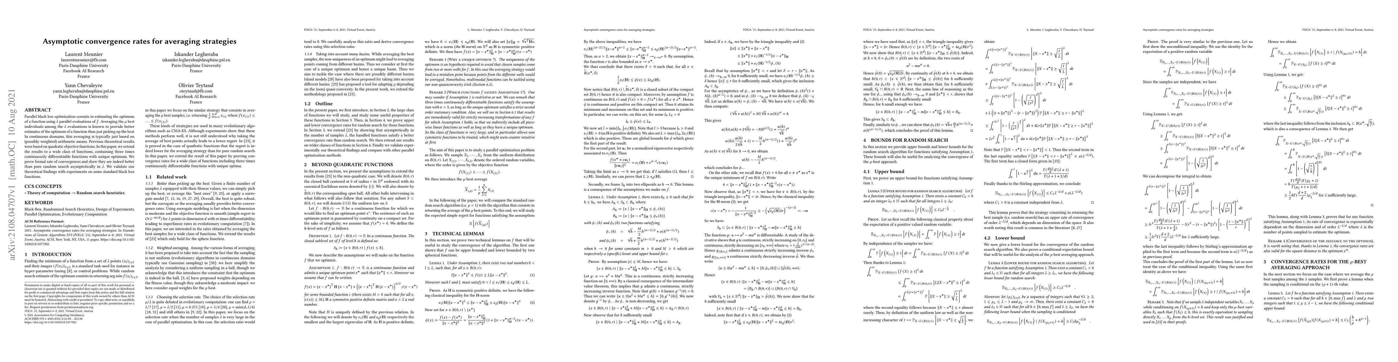 Parallel black box optimization consists in estimating the optimum of a function using $\lambda$ parallel evaluations of $f$. Averaging the $\mu$ best individuals among the $\lambda$ evaluations is known to provide better estimates of the optimum of a function than just picking up the best. In continuous domains, this averaging is typically just based on (possibly weighted) arithmetic means. Previous theoretical results were based on quadratic objective functions. In this paper, we extend the results to a wide class of functions, containing three times continuously differentiable functions with unique optimum. We prove formal rate of convergences and show they are indeed better than pure random search asymptotically in $\lambda$. We validate our theoretical findings with experiments on some standard black box functions.