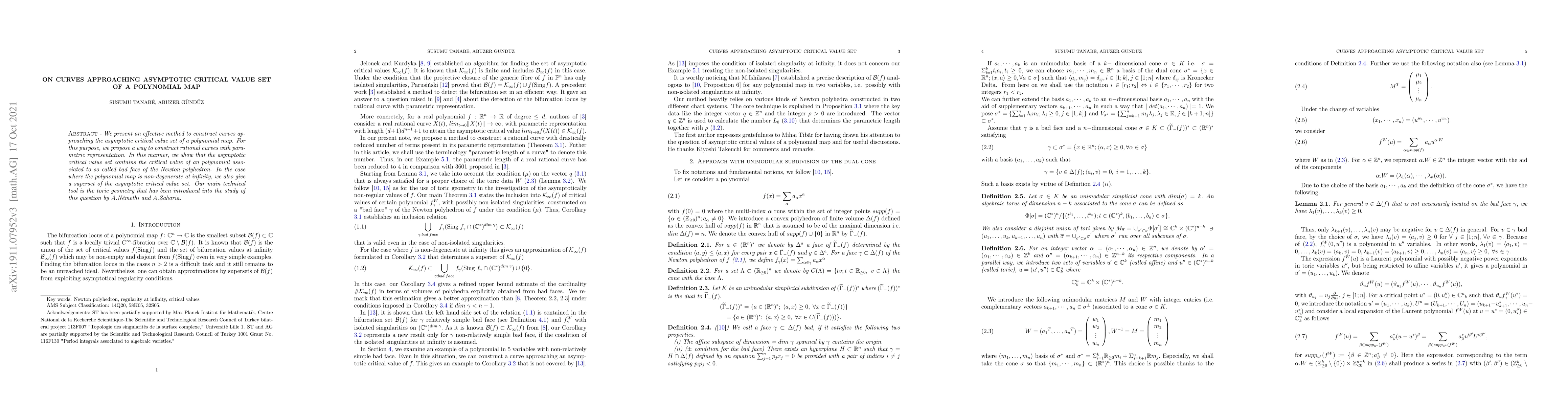 We present an effective method to investigate the asymptotic critical value set of a polynomial map. For this purpose we propose a method to construct rational curves with reduced number of terms present in its parametric representation. In this way we show that the asymptotic critical value set contains the critical value of an polynomial associated to so called bad face of the Newton polyhedron. Our main technical tool is the toric geometry that has been introduced into this question by A.N\'emethi and A.Zaharia