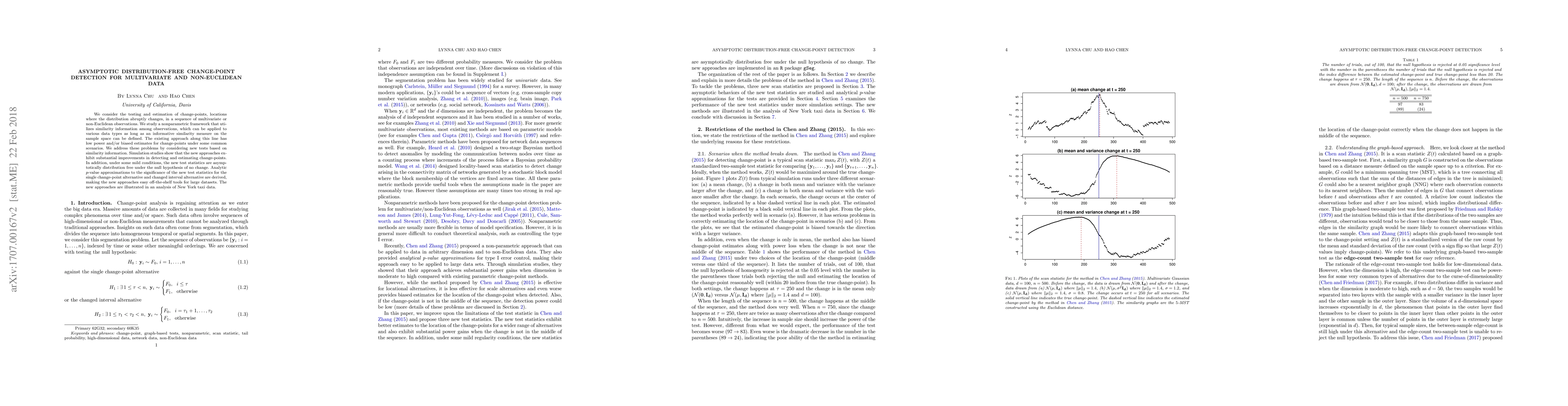 This paper proposes a new asymptotic distribution-free method for detecting change-points in multivariate and non-Euclidean data using similarity measures. The new approach shows significant improvements in change-point detection and estimation, with derived p-value approximations for practical application.