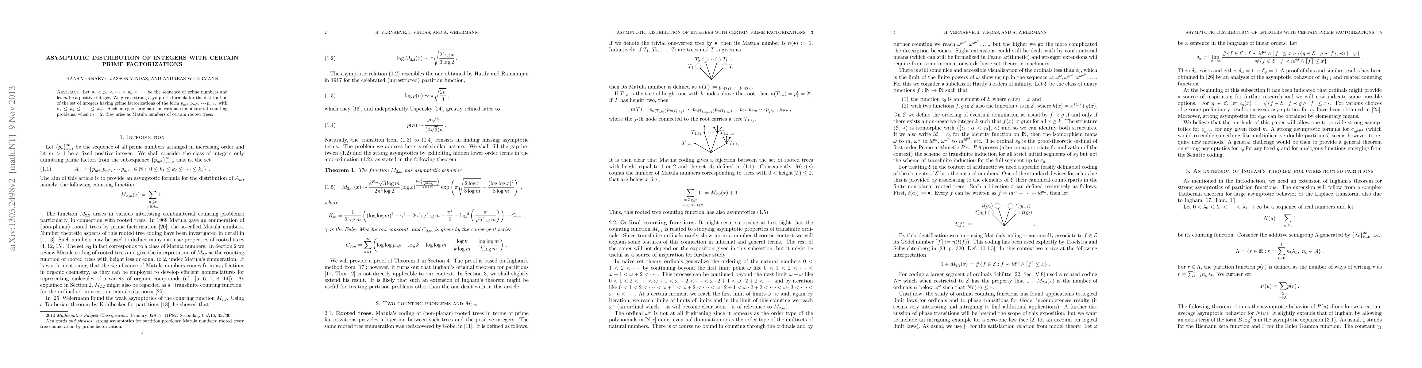This paper provides a strong asymptotic formula for the distribution of integers with prime factorizations of the form $p_{m^{k_1}}p_{m^{k_{2}}}...p_{m^{k_{n}}}$, where $k_{1}\le k_{2}\le...\le k_{n}$. These integers, notably Matula numbers for rooted trees when $m=2$, arise in combinatorial counting problems.
