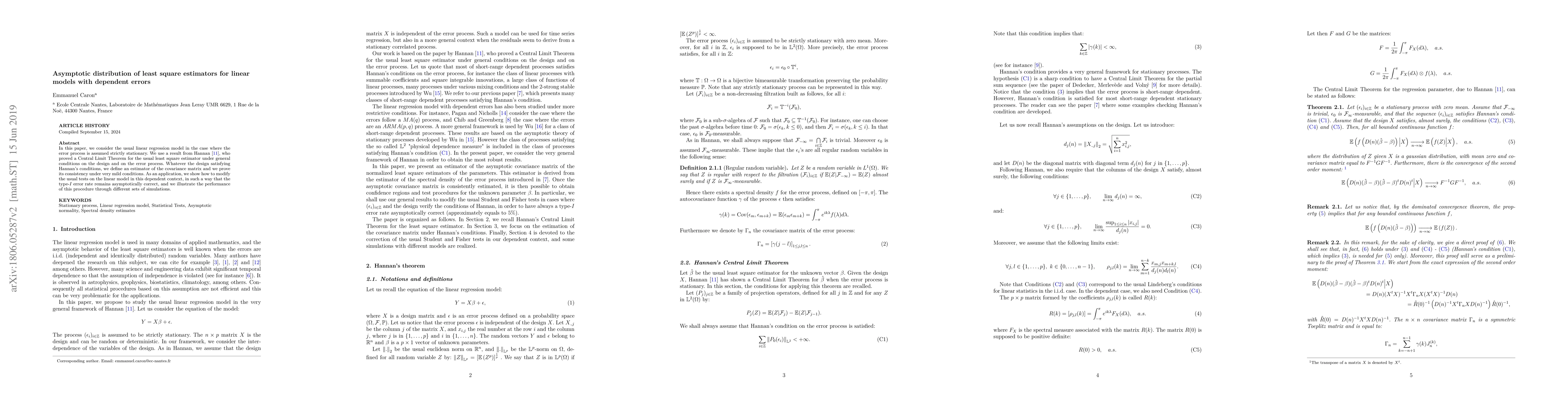 In this paper, we consider the usual linear regression model in the case where the error process is assumed strictly stationary. We use a result from Hannan (1973), who proved a Central Limit Theorem for the usual least square estimator under general conditions on the design and on the error process. Whatever the design satisfying Hannan's conditions, we define an estimator of the covariance matrix and we prove its consistency under very mild conditions. As an application, we show how to modify the usual tests on the linear model in this dependent context, in such a way that the type-I error rate remains asymptotically correct, and we illustrate the performance of this procedure through different sets of simulations.