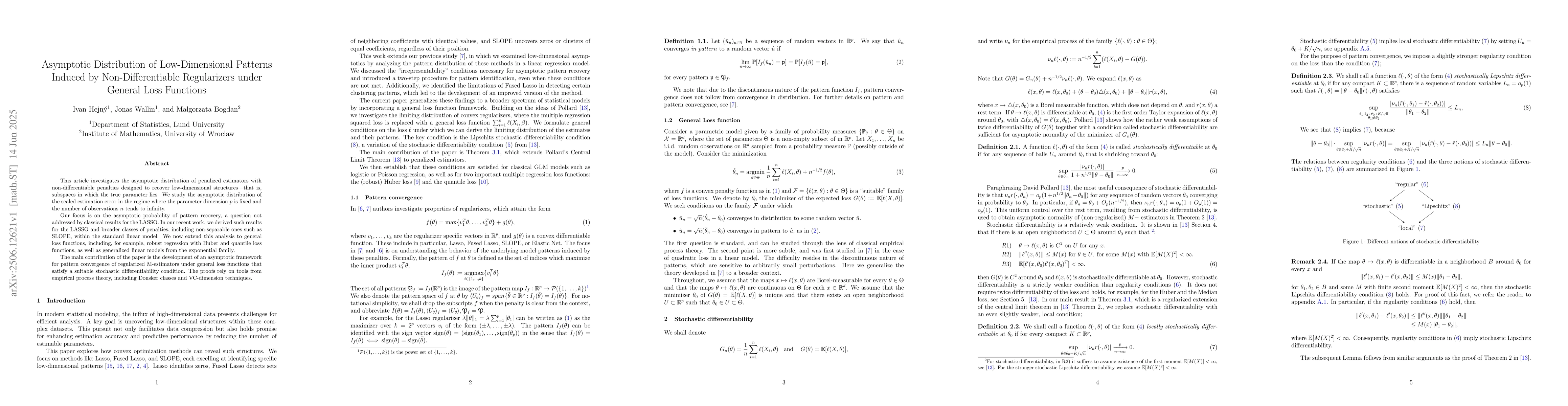 This article investigates the asymptotic distribution of penalized estimators with non-differentiable penalties designed to recover low-dimensional structures; that is, subspaces in which the true parameter lies. We study the asymptotic distribution of the scaled estimation error in the regime where the parameter dimension p is fixed and the number of observations n tends to infinity. Our focus is on the asymptotic probability of pattern recovery, a question not addressed by classical results for the LASSO. In our recent work, we derived such results for the LASSO and broader classes of penalties, including non-separable ones such as SLOPE, within the standard linear model. We now extend this analysis to general loss functions, including, for example, robust regression with Huber and quantile loss functions, as well as generalized linear models from the exponential family. The main contribution of the paper is the development of an asymptotic framework for pattern convergence of regularized M-estimators under general loss functions that satisfy a suitable stochastic differentiability condition. The proofs rely on tools from empirical process theory, including Donsker classes and VC-dimension techniques.