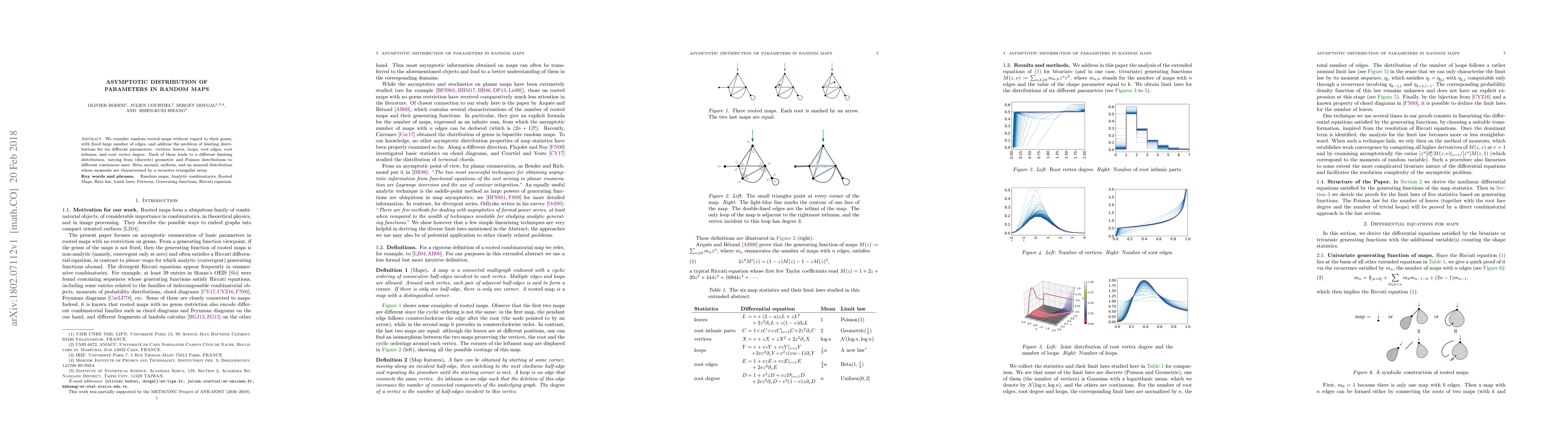 This work presents novel results on the asymptotic behavior of random map parameters, including the root face degree and number of trivial loops.