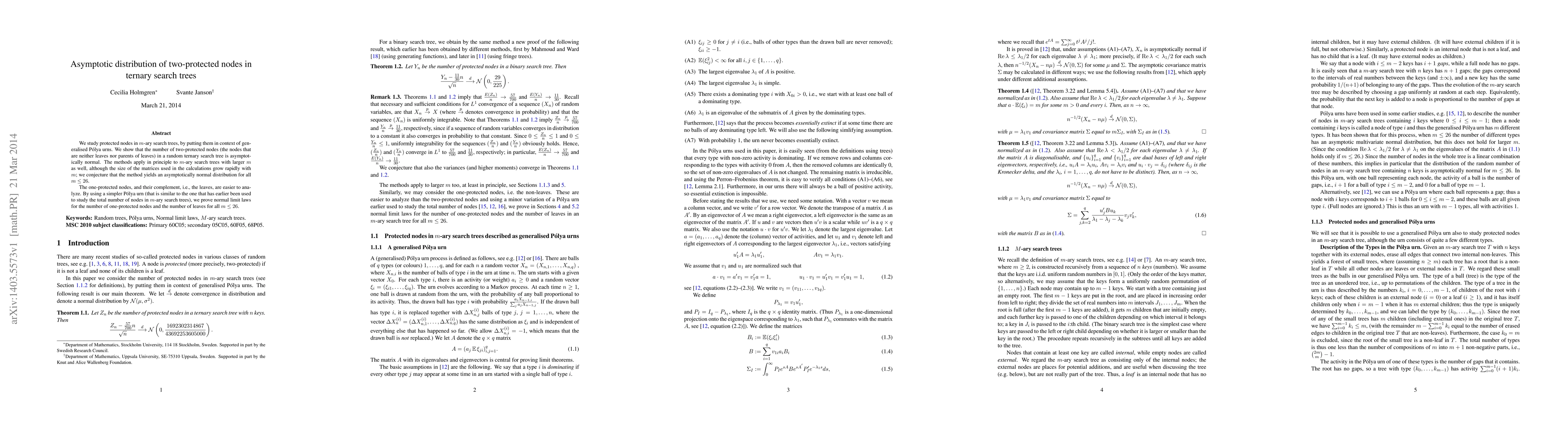 This paper investigates the asymptotic distribution of two-protected nodes in ternary search trees, demonstrating that their count follows an asymptotically normal distribution. The study extends to $m$-ary search trees, though computational complexity increases with $m$; the authors conjecture similar results for $m \leq 26$.