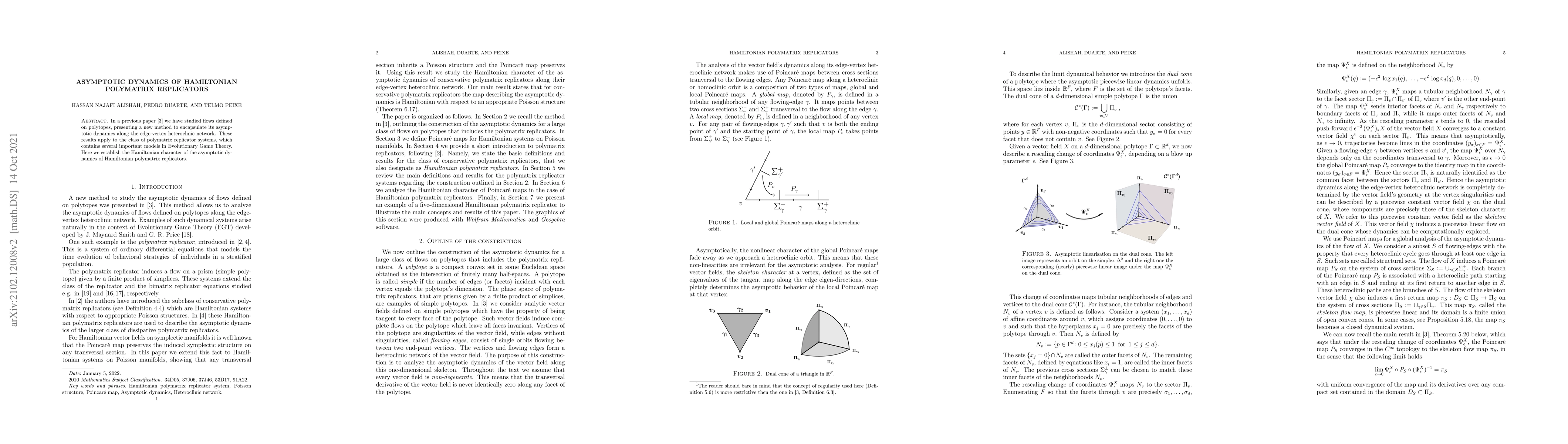 In a previous paper [3] we have studied flows defined on polytopes, presenting a new method to encapsulate its asymptotic dynamics along the edge-vertex heteroclinic network. These results apply to the class of polymatrix replicator systems, which contains several important models in Evolutionary Game Theory. Here we establish the Hamiltonian character of the asymptotic dynamics of Hamiltonian polymatrix replicators.