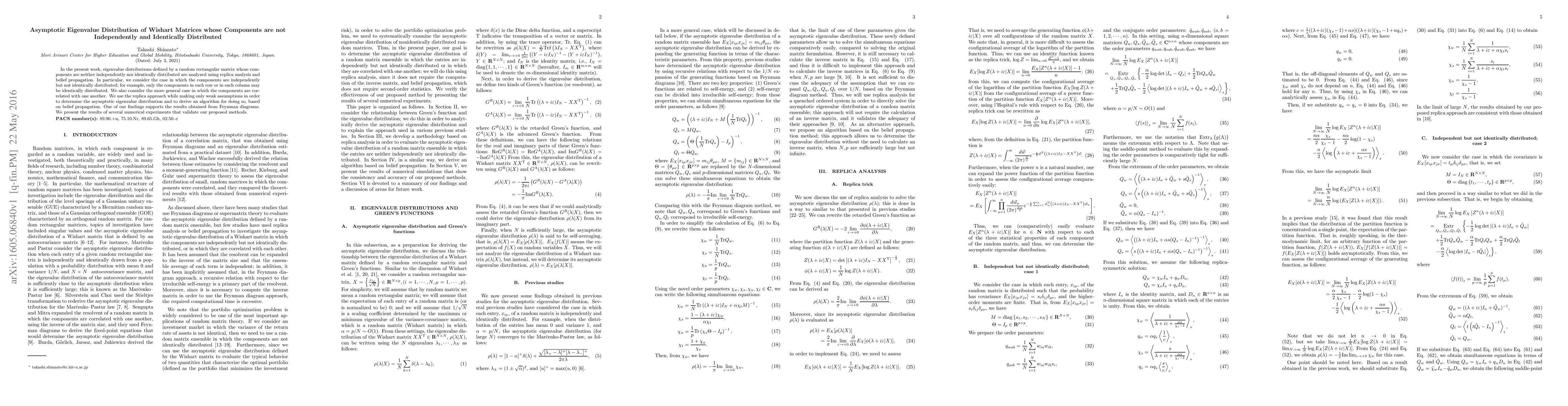This paper analyzes the asymptotic eigenvalue distribution of Wishart matrices with non-independent and non-identically distributed components using replica analysis and belief propagation. The study covers both independently but not identically distributed components and more general correlated cases, providing a replica-based algorithm for determining the distribution and validating it through numerical experiments.