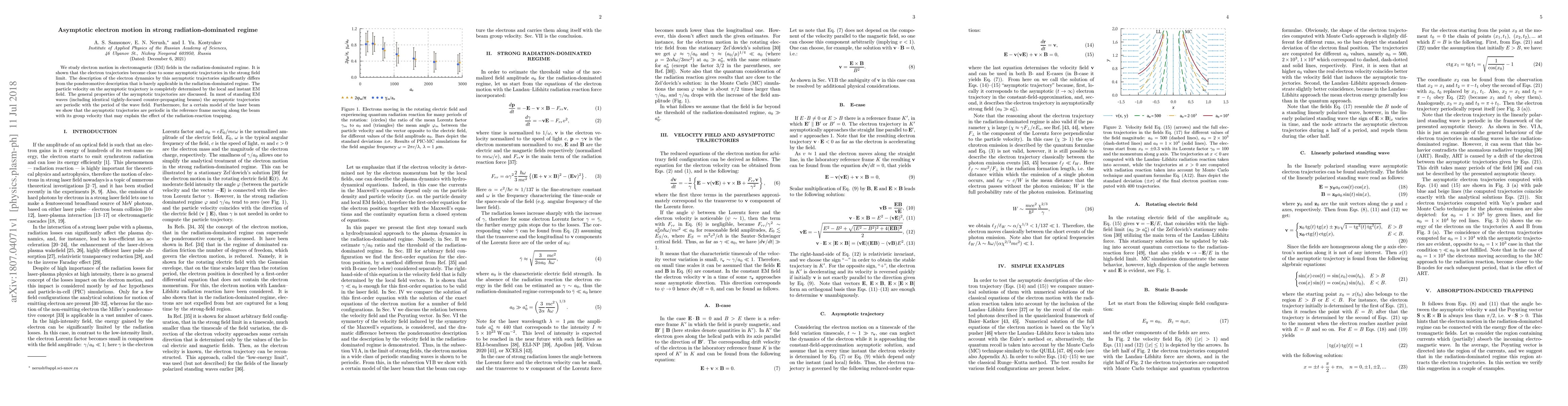 This paper investigates electron motion in electromagnetic fields under strong radiation-dominated conditions, revealing that electron trajectories converge to specific asymptotic paths in intense fields. The dynamics described by these paths differ significantly from the ponderomotive approximation, which is ineffective in such regimes, and are periodic in standing EM waves.