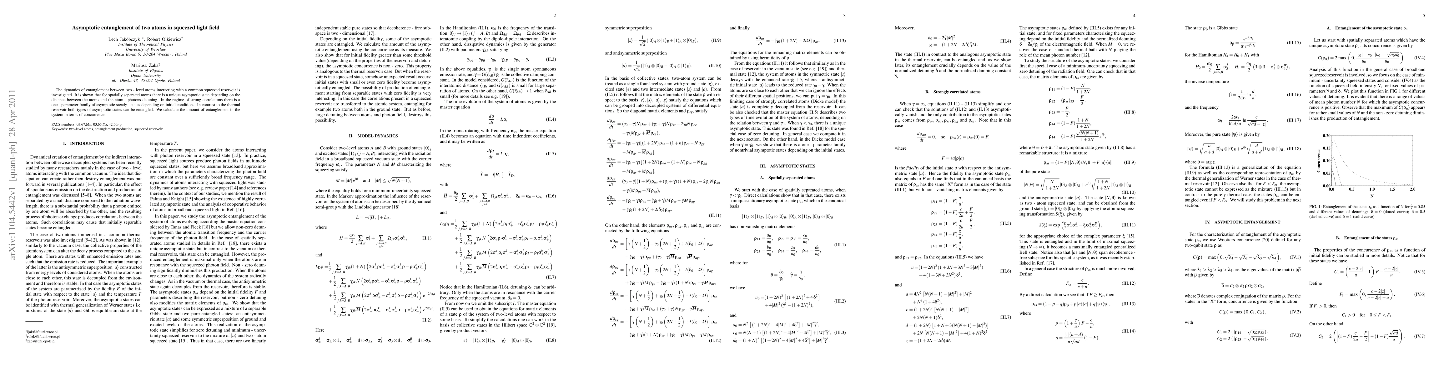 This paper investigates the entanglement dynamics between two atoms interacting with a squeezed light field, revealing unique asymptotic entangled states based on atom separation and detuning. Unlike thermal reservoirs, these states exhibit entanglement, quantified by concurrence.