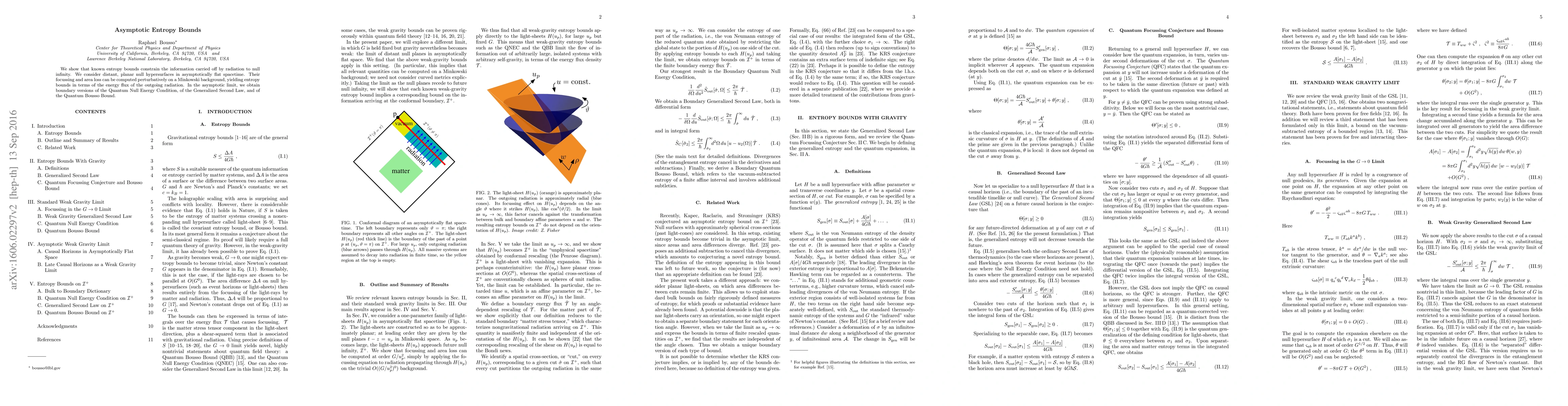We show that known entropy bounds constrain the information carried off by radiation to null infinity. We consider distant, planar null hypersurfaces in asymptotically flat spacetime. Their focussing and area loss can be computed perturbatively on a Minkowski background, yielding entropy bounds in terms of the energy flux of the outgoing radiation. In the asymptotic limit, we obtain boundary versions of the Quantum Null Energy Condition, of the Generalized Second Law, and of the Quantum Bousso Bound.