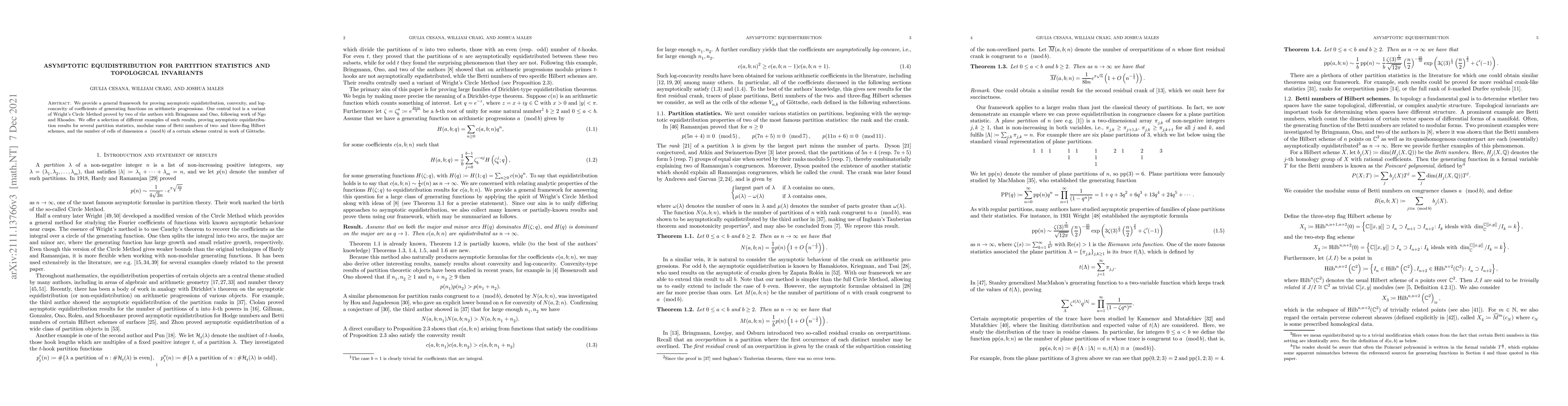 This paper establishes a framework for proving asymptotic equidistribution, convexity, and log concavity of generating function coefficients on arithmetic progressions using a variant of Wright's Circle Method. It demonstrates applications to partition statistics, Betti numbers of Hilbert schemes, and dimension-modulo-b cells in a specific scheme.