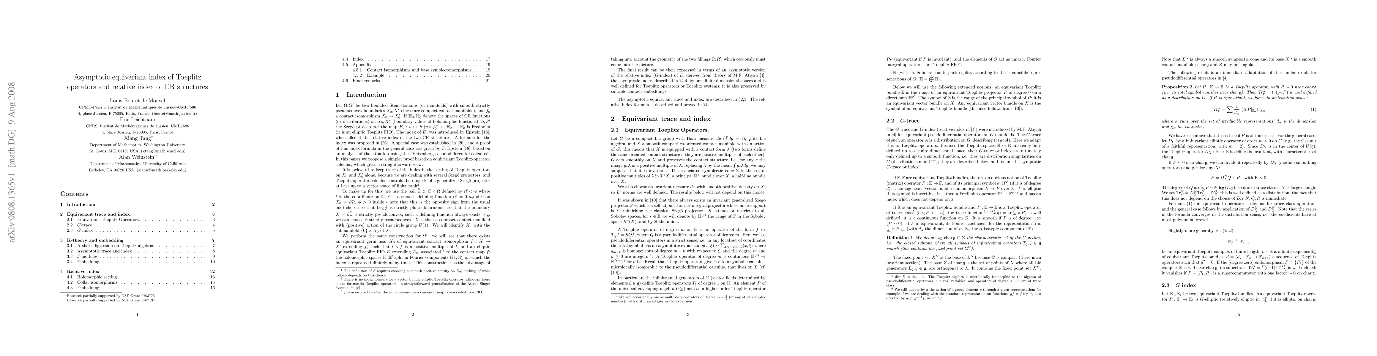 Using equivariant Toeplitz operator calculus, we give a new proof of the Atiyah-Weinstein conjecture on the index of Fourier integral operators and the relative index of CR structures.