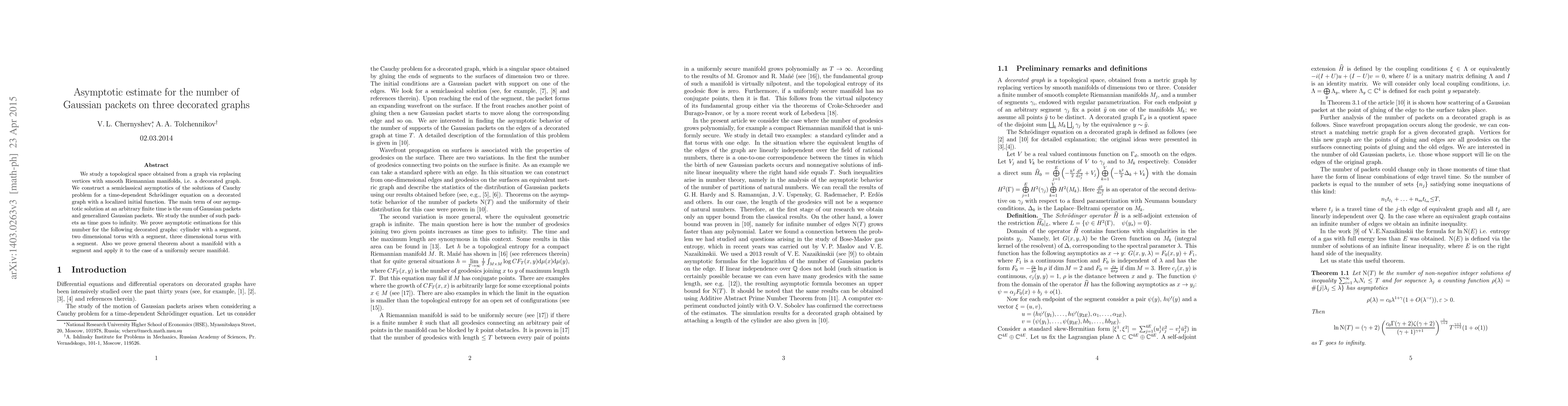 Researchers develop a mathematical model to estimate the number of Gaussian packets on decorated graphs, such as cylinders and toruses, over time. Their findings provide insight into the behavior of quantum systems in complex geometric environments.