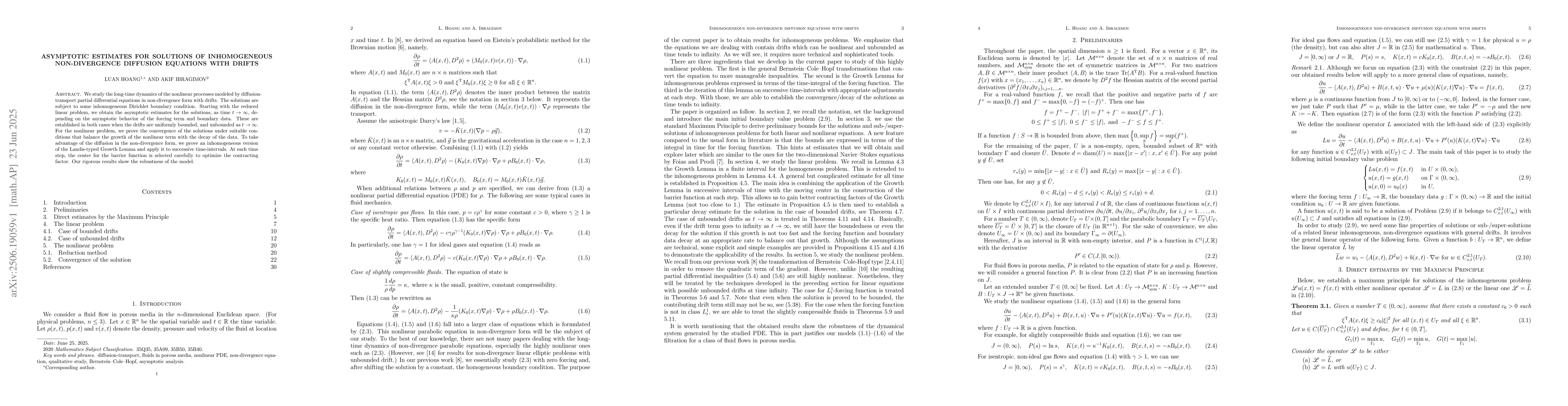 We study the long-time dynamics of the nonlinear processes modeled by diffusion-transport partial differential equations in non-divergence form with drifts. The solutions are subject to some inhomogeneous Dirichlet boundary condition. Starting with the reduced linear problem, we obtain the asymptotic estimates for the solutions, as time $t\to\infty$, depending on the asymptotic behavior of the forcing term and boundary data. These are established in both cases when the drifts are uniformly bounded, and unbounded as $t\to\infty$. For the nonlinear problem, we prove the convergence of the solutions under suitable conditions that balance the growth of the nonlinear term with the decay of the data. To take advantage of the diffusion in the non-divergence form, we prove an inhomogeneous version of the Landis-typed Growth Lemma and apply it to successive time-intervals. At each time step, the center for the barrier function is selected carefully to optimize the contracting factor. Our rigorous results show the robustness of the model.