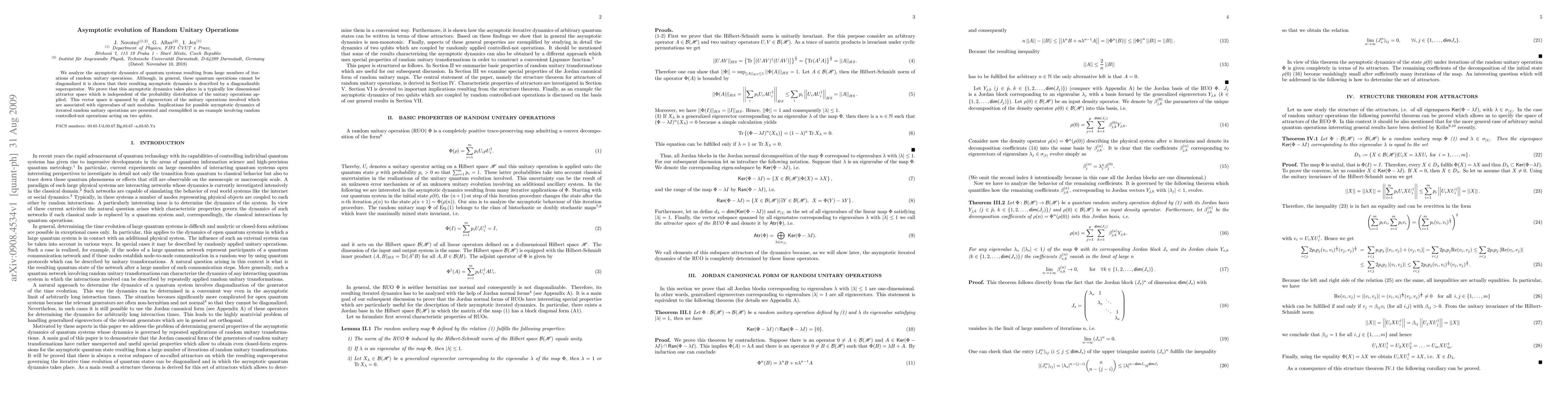 This paper investigates the asymptotic behavior of quantum systems subjected to numerous iterations of random unitary operations, revealing that despite non-diagonalizability, the dynamics converge to a low-dimensional attractor space. This space is spanned by the eigenvectors of the unitary operations with unit modulus eigenvalues, independent of the specific probability distribution of the operations.