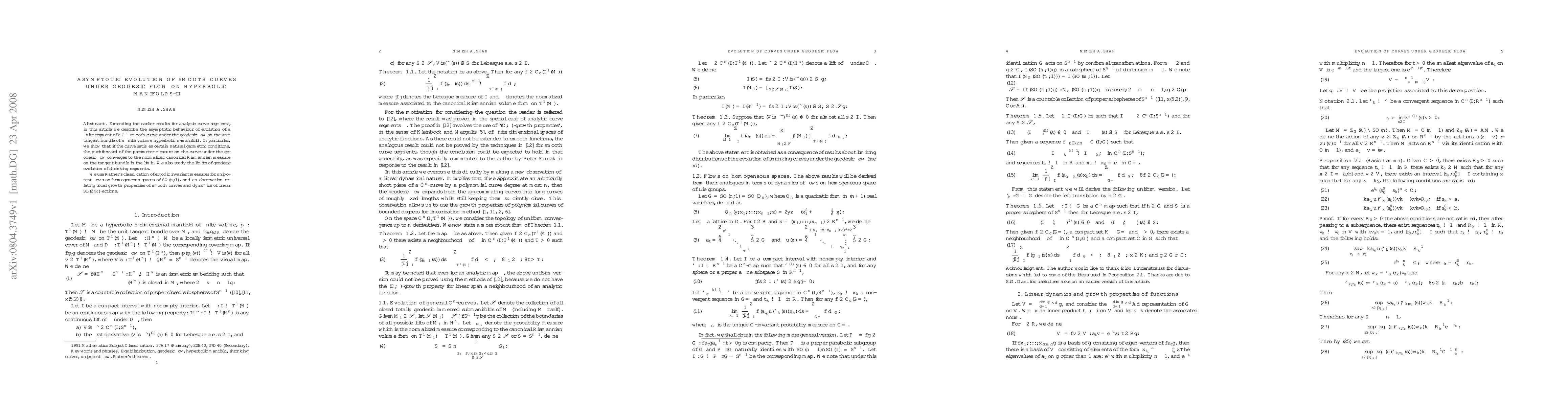 This paper extends previous results on the asymptotic behavior of analytic curve segments to C^n-smooth curves under geodesic flow on hyperbolic manifolds. It demonstrates that under certain geometric conditions, the pushforward of the parameter measure on the curve converges to the normalized canonical Riemannian measure on the tangent bundle, and explores the limits of geodesic evolution of shrinking segments using Ratner's classification and SL(2,R)-actions.