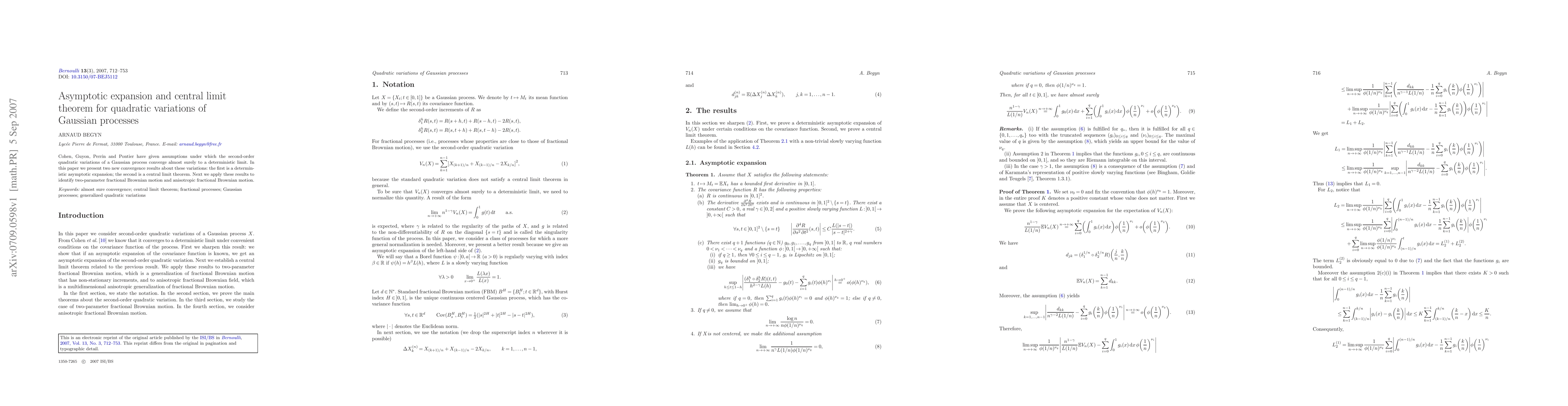 Cohen, Guyon, Perrin and Pontier have given assumptions under which the second-order quadratic variations of a Gaussian process converge almost surely to a deterministic limit. In this paper we present two new convergence results about these variations: the first is a deterministic asymptotic expansion; the second is a central limit theorem. Next we apply these results to identify two-parameter fractional Brownian motion and anisotropic fractional Brownian motion.