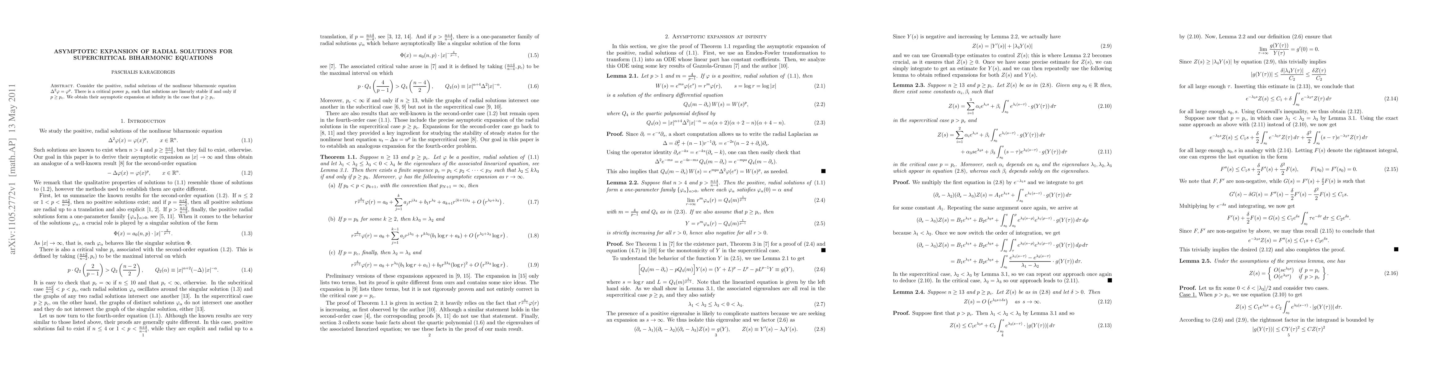 Consider the positive, radial solutions of the nonlinear biharmonic equation $\Delta^2 u = u^p$. There is a critical power $p_c$ such that solutions are linearly stable if and only if $p\geq p_c$. We obtain their asymptotic expansion at infinity in the case that $p\geq p_c$.