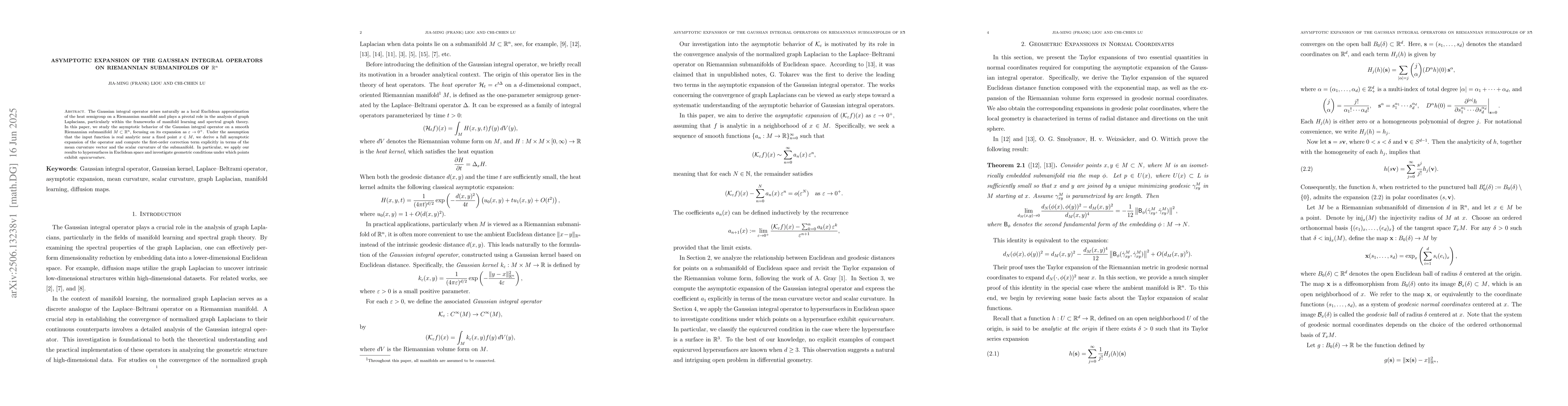 The paper introduces a detailed asymptotic expansion of the Gaussian integral operator on Riemannian submanifolds, including explicit computation of the first-order correction term.