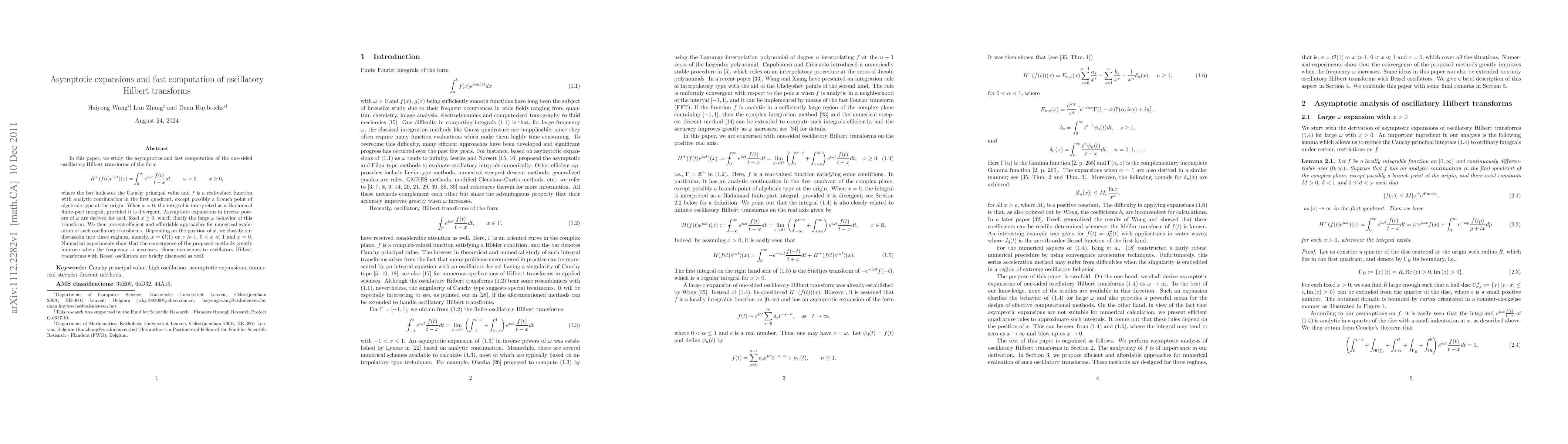 This paper derives asymptotic expansions for oscillatory Hilbert transforms and presents efficient numerical methods for their computation. The study focuses on large frequency behavior and categorizes evaluation strategies based on the position of $x$, showing significant improvement in convergence with increasing frequency.