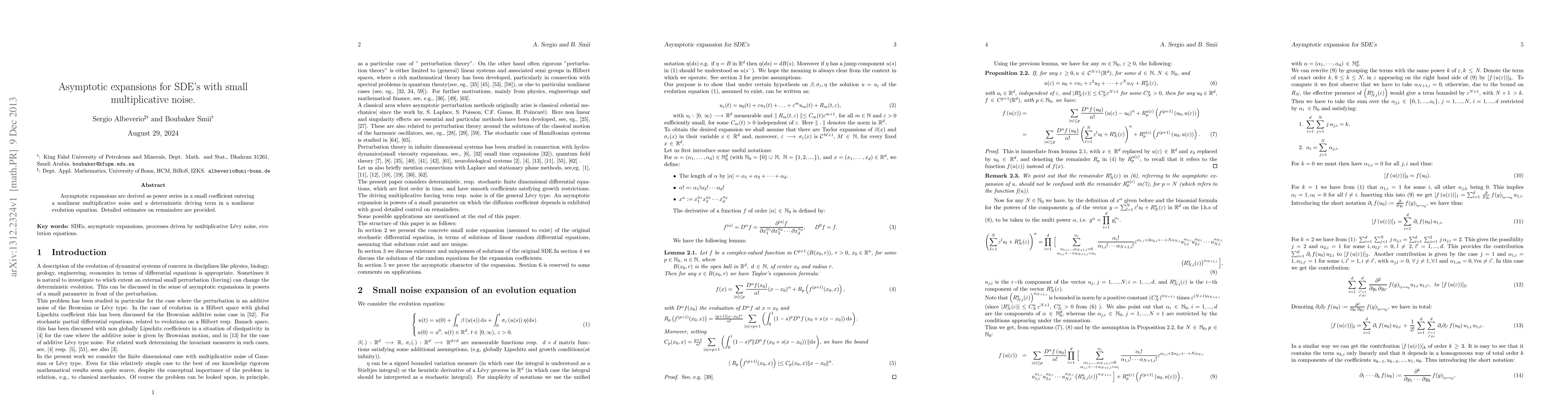 Asymptotic expansions are derived as power series in a small coefficient entering a nonlinear multiplicative noise and a deterministic driving term in a nonlinear evolution equation. Detailed estimates on remainders are provided.