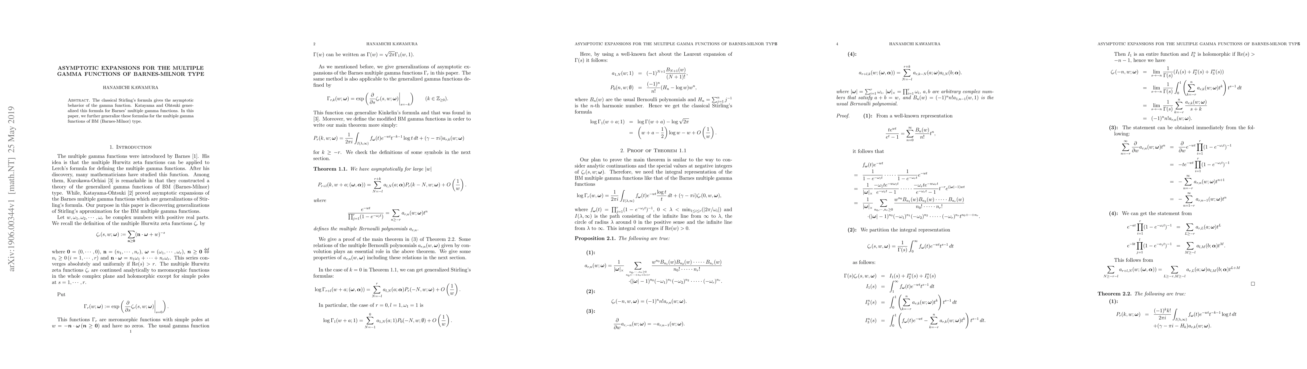 This paper generalizes Katayama and Ohtsuki's formulas to Barnes-Milnor type multiple gamma functions, providing new insights into their asymptotic behavior.