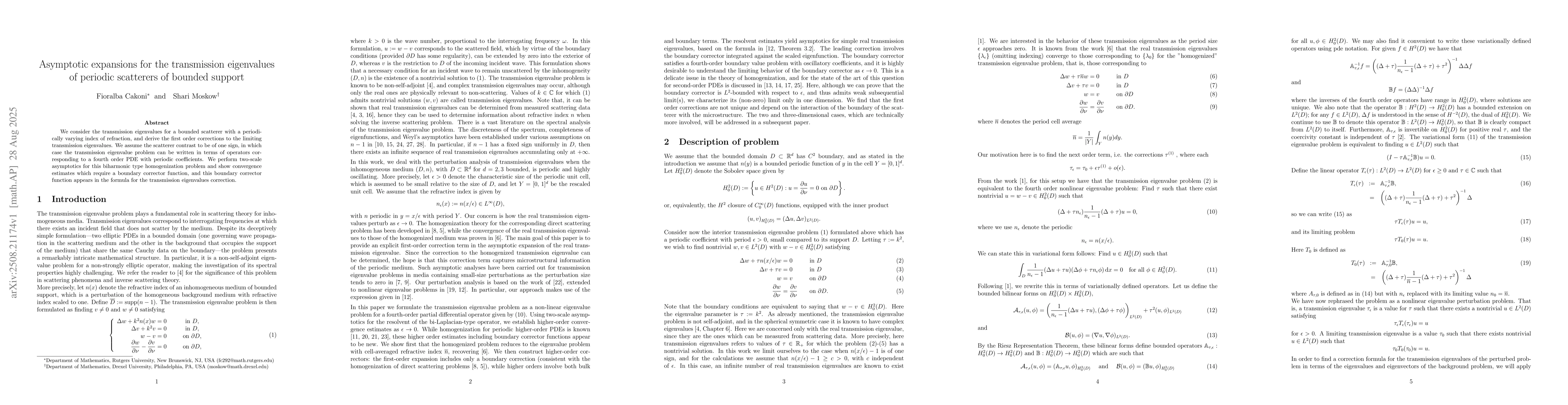 We consider the transmission eigenvalues for a bounded scatterer with a periodically varying index of refraction, and derive the first order corrections to the limiting transmission eigenvalues. We assume the scatterer contrast to be of one sign, in which case the transmission eigenvalue problem can be written in terms of operators corresponding to a fourth order PDE with periodic coefficients. We perform two-scale asymptotics for this biharmonic type homogenization problem and show convergence estimates which require a boundary corrector function, and this boundary corrector function appears in the formula for the transmission eigenvalues correction.