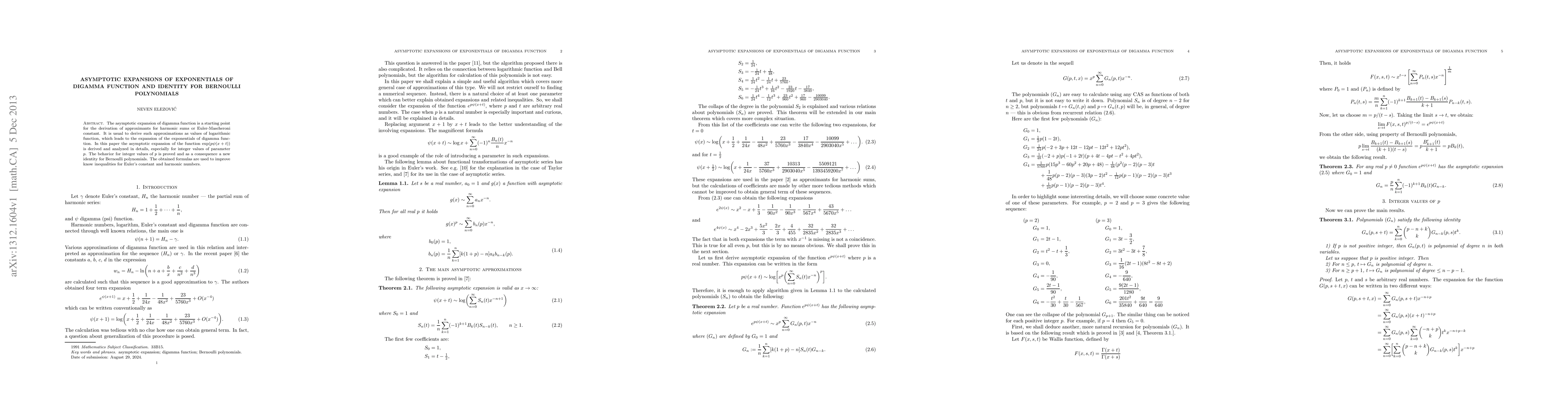 This paper derives the asymptotic expansion of $\exp(p\psi(x+t))$, focusing on integer values of $p$, and proves new identities for Bernoulli polynomials. The results improve known inequalities for Euler's constant and harmonic numbers.