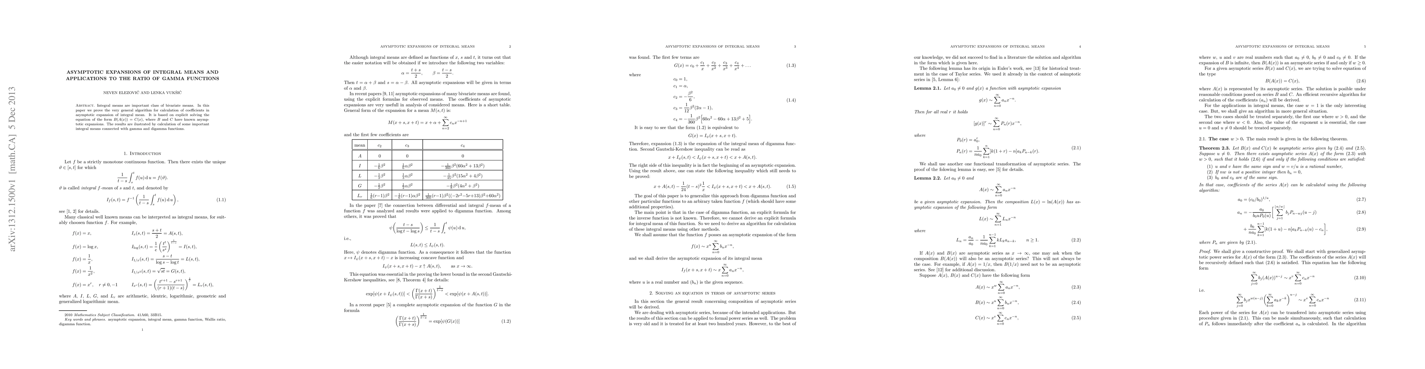 This paper presents a general algorithm for determining coefficients in asymptotic expansions of integral means, based on solving equations of the form $B(A(x))=C(x)$. The method is demonstrated through calculations involving integral means related to gamma and digamma functions.