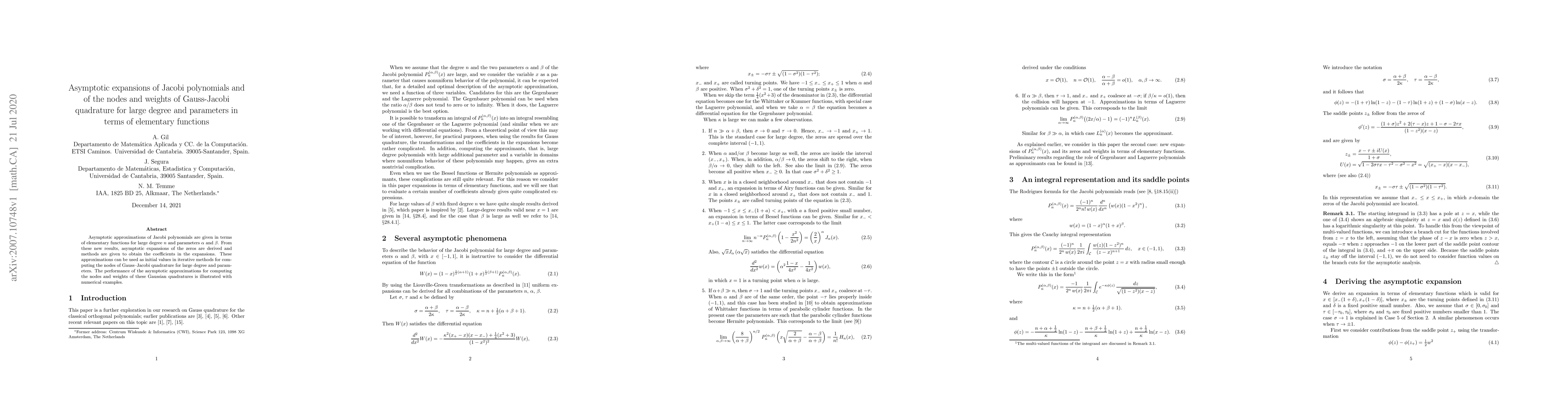 This paper provides asymptotic expansions for Jacobi polynomials and the nodes and weights of Gauss-Jacobi quadrature for large degrees and parameters, expressed in terms of elementary functions. It also demonstrates the effectiveness of these approximations through numerical examples.