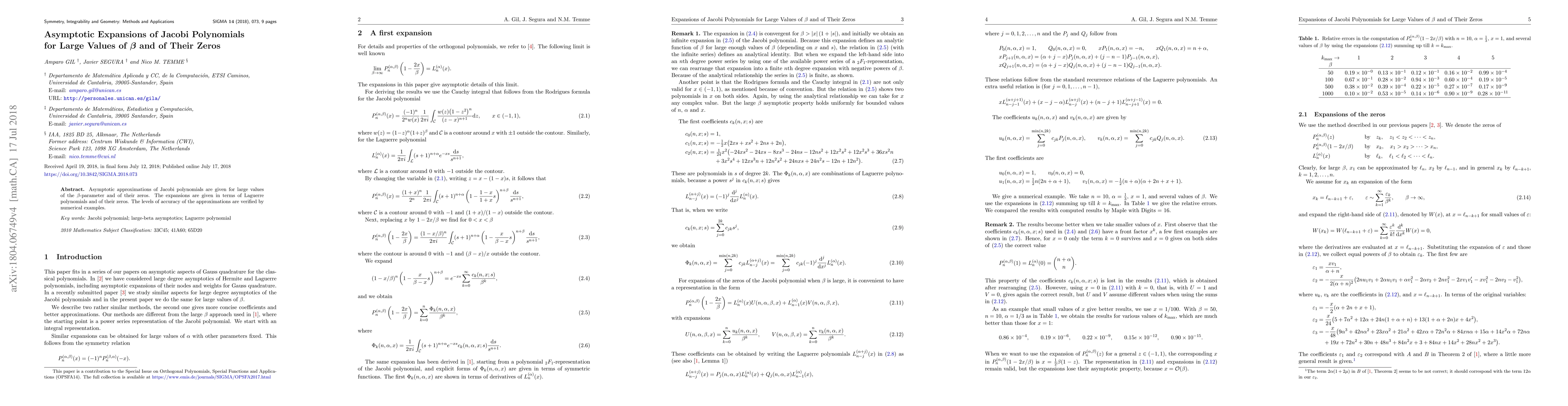 This paper provides asymptotic expansions for Jacobi polynomials and their zeros when the $\beta$-parameter is large, expressed in terms of Laguerre polynomials and their zeros. Numerical examples verify the accuracy of these approximations.