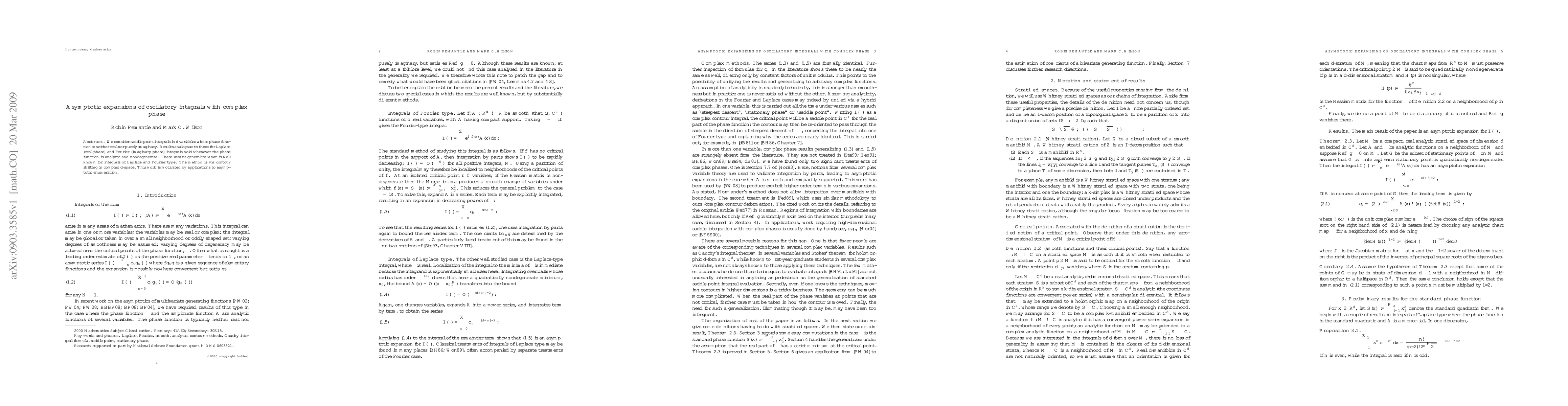 This paper develops asymptotic expansions for oscillatory integrals with complex phase functions, generalizing results for Laplace and Fourier integrals through contour shifting in complex space, with applications in asymptotic enumeration.