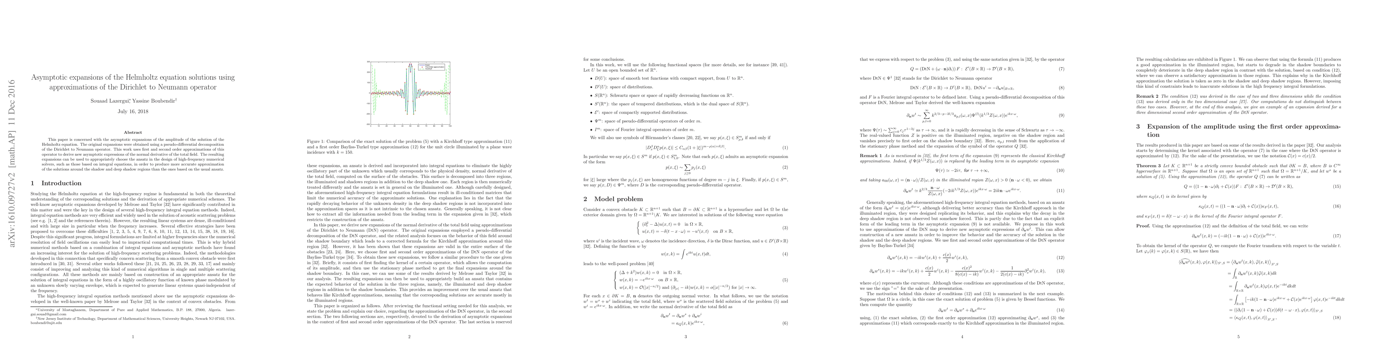 This paper is concerned with the asymptotic expansions of the amplitude of the solution of the Helmholtz equation. The original expansions were obtained using a pseudo-differential decomposition of the Dirichlet to Neumann operator. This work uses first and second order approximations of this operator to derive new asymptotic expressions of the normal derivative of the total field. The resulting expansions can be used to appropriately choose the ansatz in the design of high-frequency numerical solvers, such as those based on integral equations, in order to produce more accurate approximation of the solutions around the shadow and deep shadow regions than the ones based on the usual ansatz.