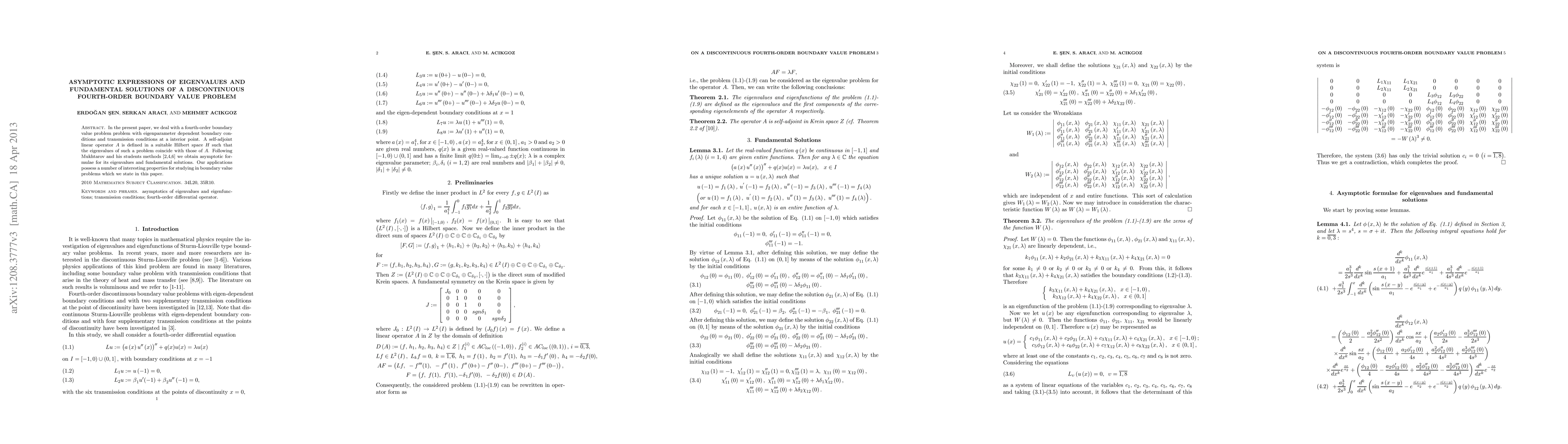 This paper derives asymptotic expressions for the eigenvalues and fundamental solutions of a fourth-order boundary value problem with eigenparameter-dependent boundary and transmission conditions. Utilizing methods from Mukhtarov and his students, it establishes self-adjoint linear operator A and discusses its implications for boundary value problems.