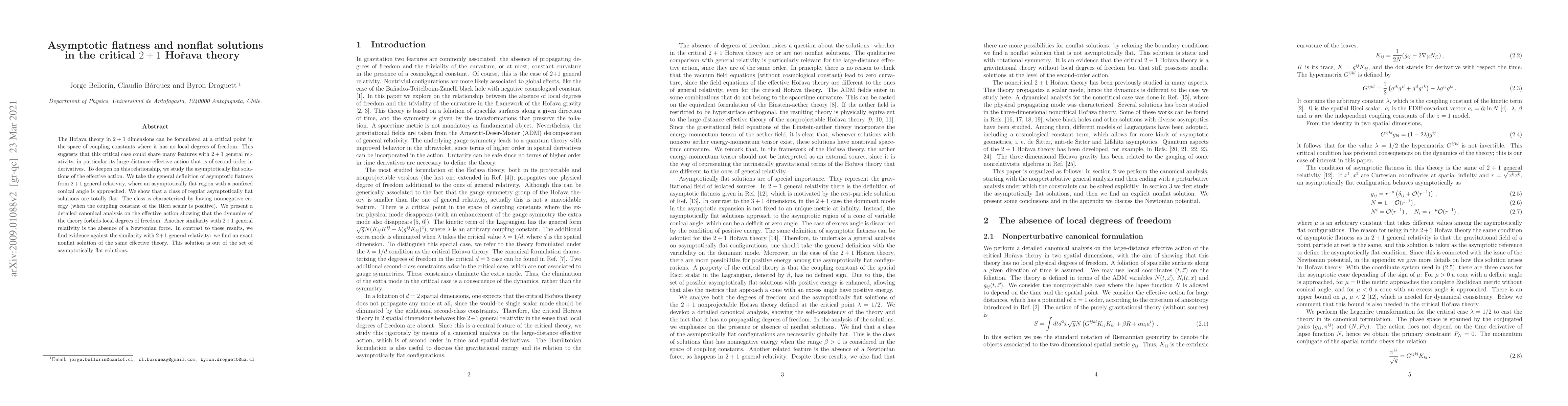 Researchers in 2+1 Horava theory found that asymptotically flat solutions have nonnegative energy but lack local degrees of freedom, mirroring similarities with 2+1 general relativity. However, they also discovered an exact nonflat solution that contradicts this similarity, highlighting the distinct nature of the theory.