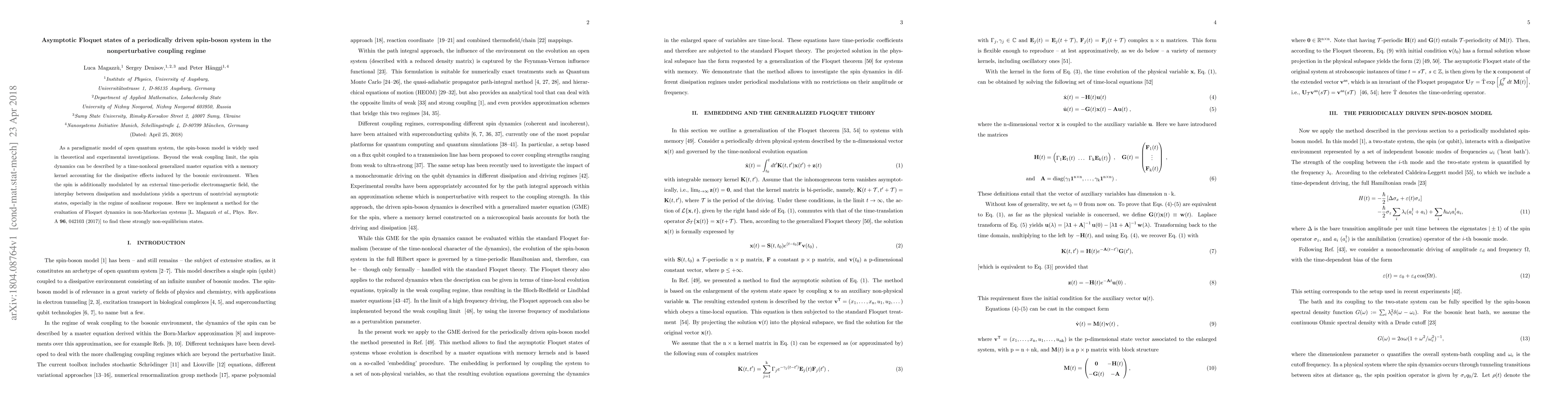 As a paradigmatic model of open quantum system, the spin-boson model is widely used in theoretical and experimental investigations. Beyond the weak coupling limit, the spin dynamics can be described by a time-nonlocal generalized master equation with a memory kernel accounting for the dissipative effects induced by the bosonic environment. When the spin is additionally modulated by an external time-periodic electromagnetic field, the interplay between dissipation and modulations yields a spectrum of nontrivial asymptotic states, especially in the regime of nonlinear response. Here we implement a method for the evaluation of Floquet dynamics in non-Markovian systems [L. Magazz\`u et al., Phys. Rev. A 96, 042103 (2017)] to find these strongly non-equilibrium states.