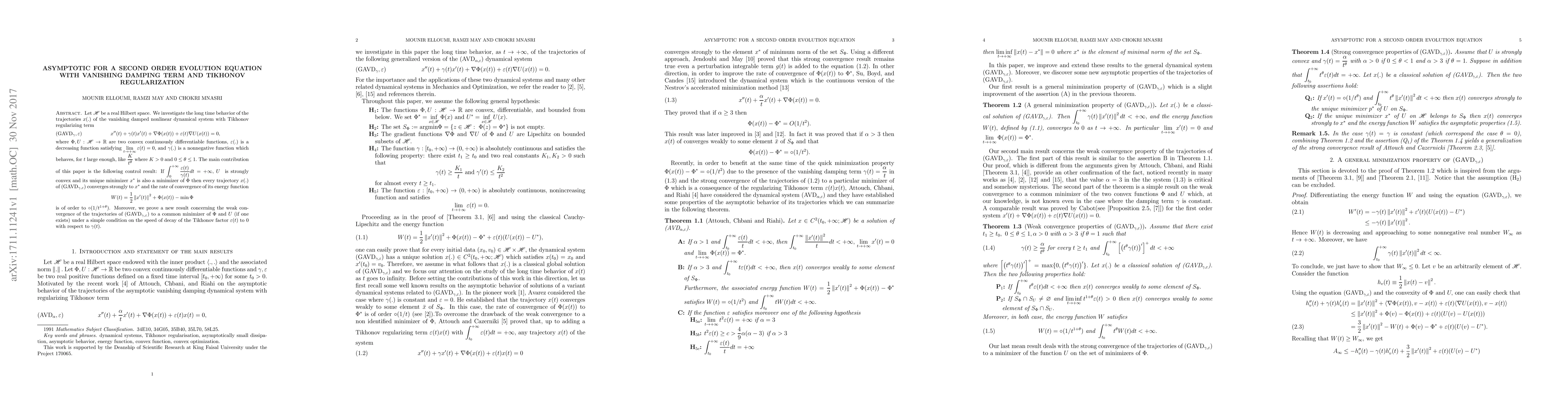 We investigate the asymptotic behavior of solutions to a second order differential equation with vanishing damping term, convex potential and regularizing Tikhonov term.
