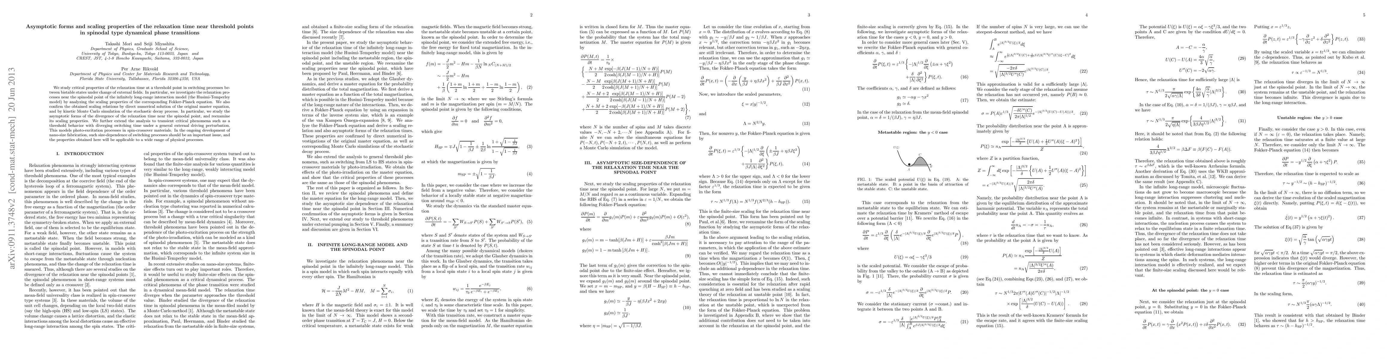 We study critical properties of the relaxation time at a threshold point in switching processes between bistable states under change of external fields. In particular, we investigate the relaxation processes near the spinodal point of the infinitely long-range interaction model (the Husimi-Temperley model) by analyzing the scaling properties of the corresponding Fokker-Planck equation. We also confirm the obtained scaling relations by direct numerical solution of the original master equation, and by kinetic Monte Carlo simulation of the stochastic decay process. In particular, we study the asymptotic forms of the divergence of the relaxation time near the spinodal point, and reexamine its scaling properties. We further extend the analysis to transient critical phenomena such as a threshold behavior with diverging switching time under a general external driving perturbation. This models photo-excitation processes in spin-crossover materials. In the ongoing development of nano-size fabrication, such size-dependence of switching processes should be an important issue, and the properties obtained here will be applicable to a wide range of physical processes.