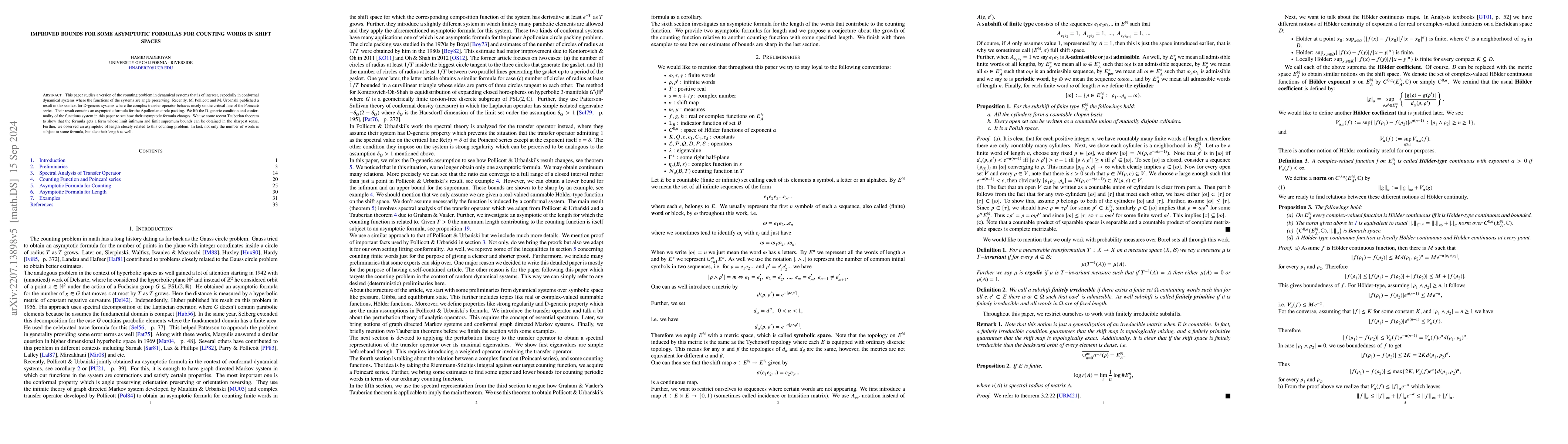This paper studies a version of counting problem in dynamical system that is of interest specially in conformal dynamical systems where functions of the systems are angle preserving. Recently M. Pollicott and M. Urba\'{n}ski published a result in this context for D-generic systems where the complex transfer operator behaves nice on the critical line of the Poincare series. Their result contains an asymptotic formula for the planer Apollonian circle packing. We lift the D-generic condition in the paper to see how their asymptotic formula changes. Further we observed an asymptotic of length closely related to this counting problem.