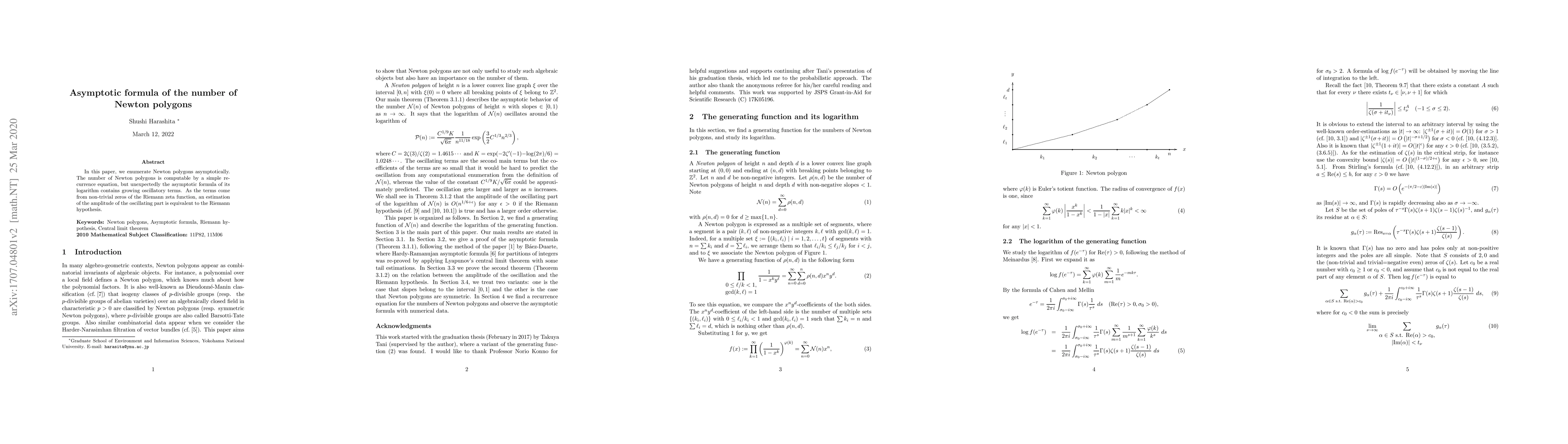 This paper provides an asymptotic formula for the number of Newton polygons, revealing that the logarithm's asymptotic behavior includes growing oscillatory terms linked to non-trivial zeros of the Riemann zeta function, with the amplitude estimation equivalent to the Riemann hypothesis.