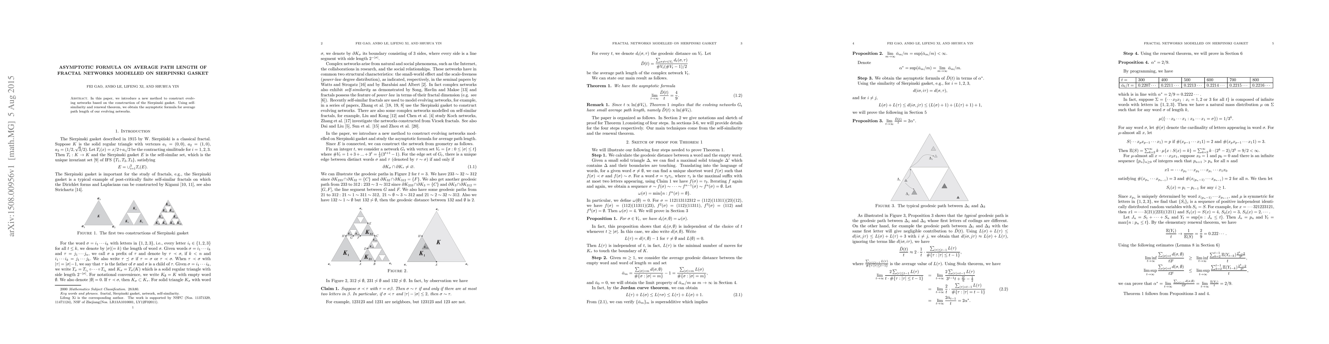 This paper develops a method for constructing evolving fractal networks modeled on the Sierpinski gasket and derives an asymptotic formula for the average path length using self-similarity and the renewal theorem.