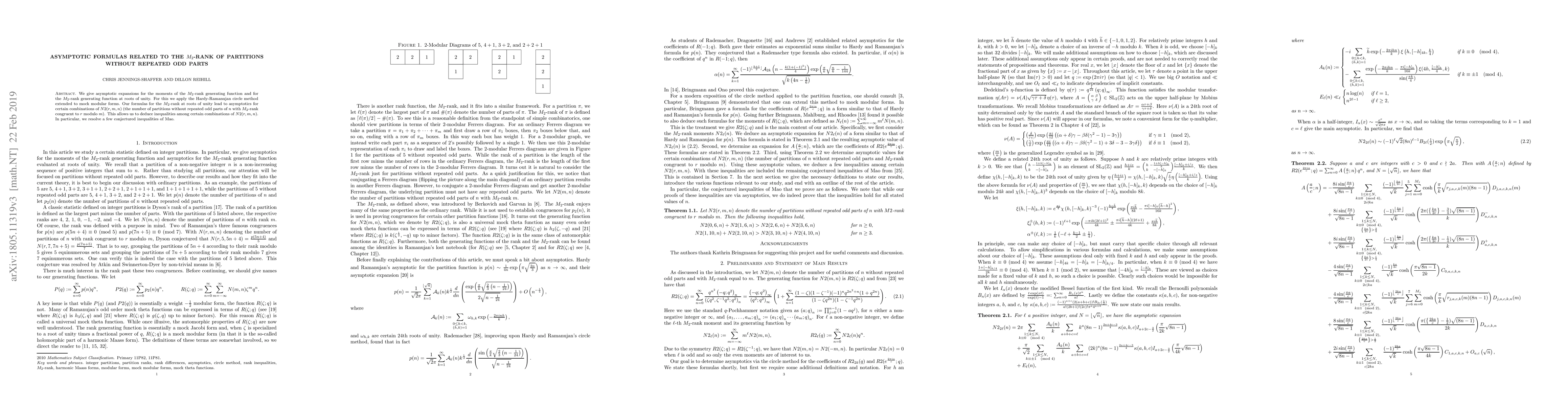 We give asymptotic expansions for the moments of the $M_2$-rank generating function and for the $M_2$-rank generating function at roots of unity. For this we apply the Hardy-Ramanujan circle method extended to mock modular forms. Our formulas for the $M_2$-rank at roots of unity lead to asymptotics for certain combinations of $N2(r,m,n)$ (the number of partitions without repeated odd parts of $n$ with $M_2$-rank congruent to $r$ modulo $m$). This allows us to deduce inequalities among certain combinations of $N2(r,m,n)$. In particular, we resolve a few conjectured inequalities of Mao.