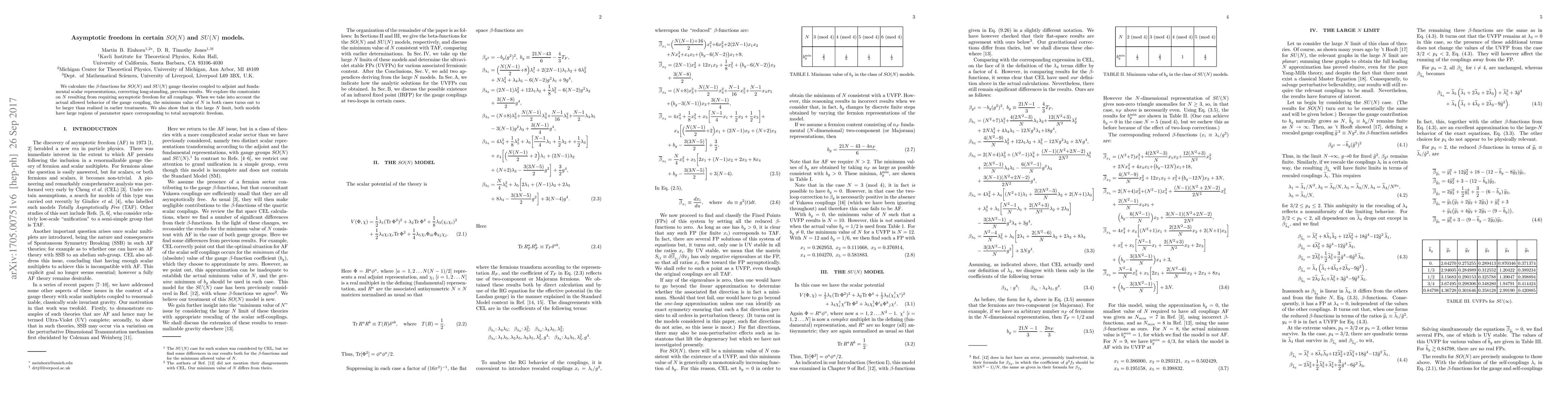 We calculate the $\beta$-functions for $SO(N)$ and $SU(N)$ gauge theories coupled to adjoint and fundamental scalar representations, correcting long-standing, previous results. We explore the constraints on $N$ resulting from requiring asymptotic freedom for all couplings. When we take into account the actual allowed behavior of the gauge coupling, the minimum value of $N$ in both cases turns out to be larger than realized in earlier treatments. We also show that in the large $N$ limit, both models have large regions of parameter space corresponding to total asymptotic freedom.