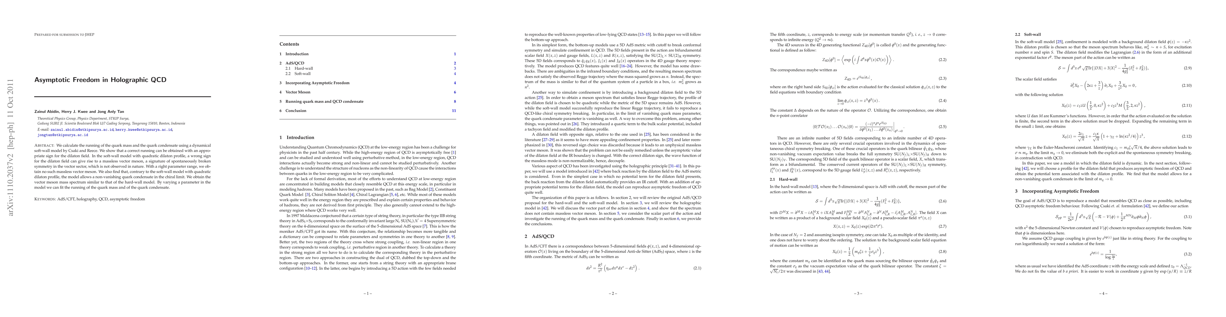 We calculate the running of the quark mass and the quark condensate using a dynamical soft-wall model by Csaki and Reece. We show that a correct running can be obtained with an appropriate sign for the dilaton field. In the soft-wall model with quadratic dilaton profile, a wrong sign for the dilaton field can give rise to a massless vector meson, a signature of spontaneously broken symmetry in the vector sector, which is not observed in nature. With a right parameter range, we obtain no such massless vector meson. We also find that, contrary to the soft-wall model with quadratic dilaton profile, the model allows a non-vanishing quark condensate in the chiral limit. We obtain the vector meson mass spectrum similar to that of the hard-wall model. By varying a parameter in the model we can fit the running of the quark mass and of the quark condensate.