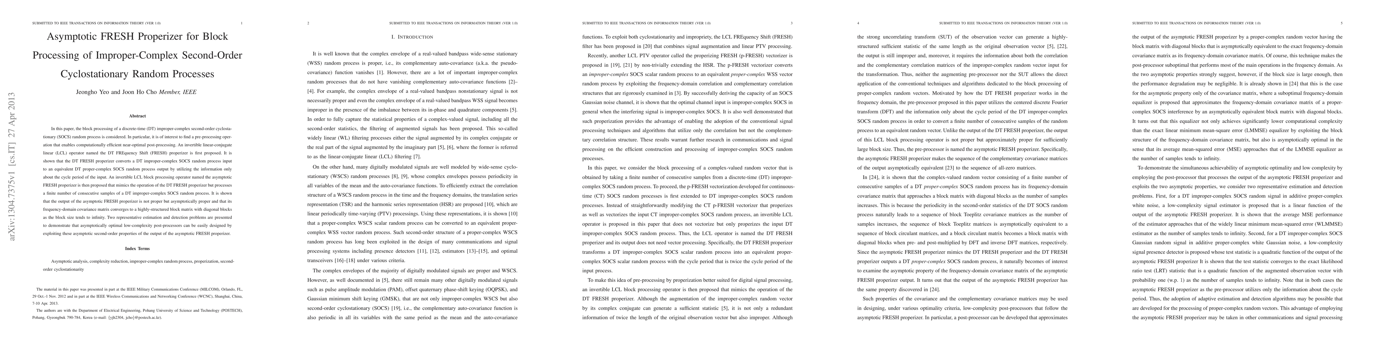 Researchers develop an asymptotic properizer to efficiently process improper-complex second-order cyclostationary random processes, enabling near-optimal post-processing with low complexity, and show its potential for designing optimal estimators and detectors.