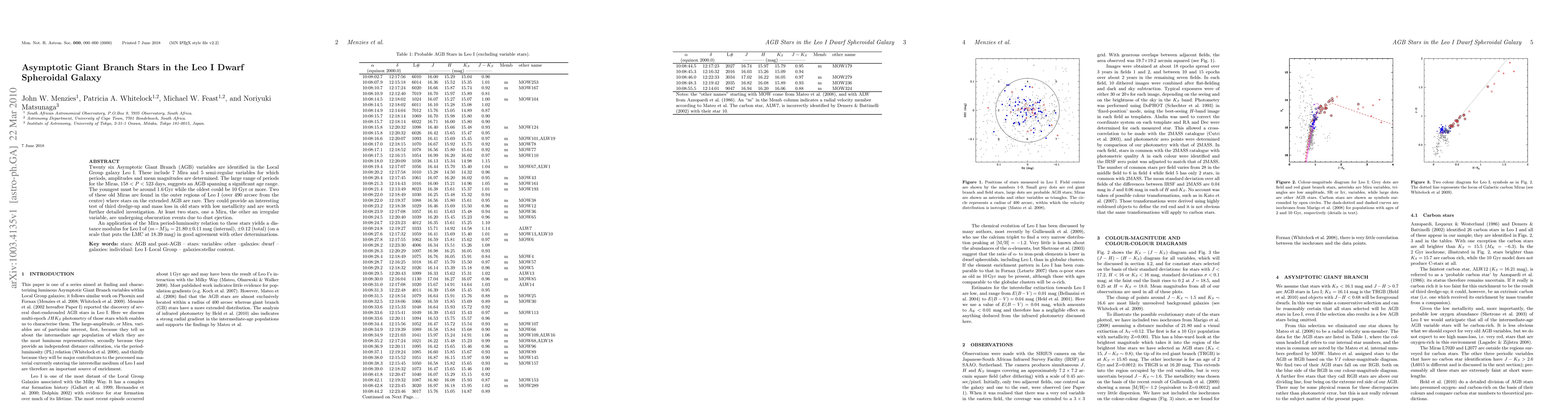 This study contributes to understanding the chemical evolution and stellar populations of the Leo I dwarf spheroidal galaxy, particularly focusing on AGB stars, which are crucial for distance determination and stellar evolution studies in low-metallicity environments.