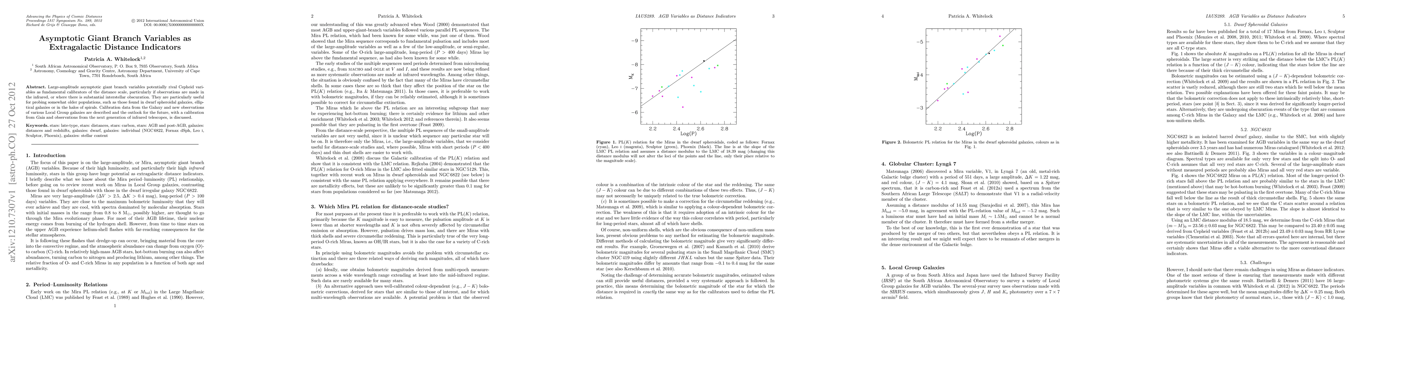 This paper explores the potential of large-amplitude asymptotic giant branch variables as extragalactic distance indicators, especially in infrared observations where they rival Cepheid variables. The study highlights their utility in older stellar populations and discusses calibration data and future prospects with Gaia and next-gen infrared telescopes.