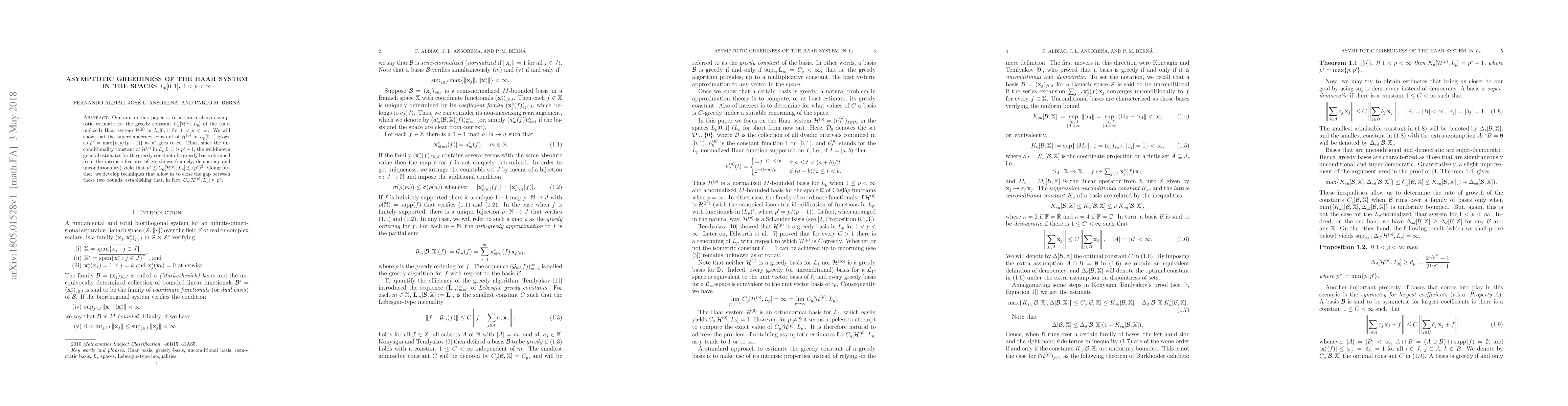Our aim in this paper is to attain a sharp asymptotic estimate for the greedy constant $C_g[\mathcal{H}^{(p)},L_p]$ of the (normalized) Haar system $\mathcal{H}^{(p)}$ in $L_{p}[0,1]$ for $1