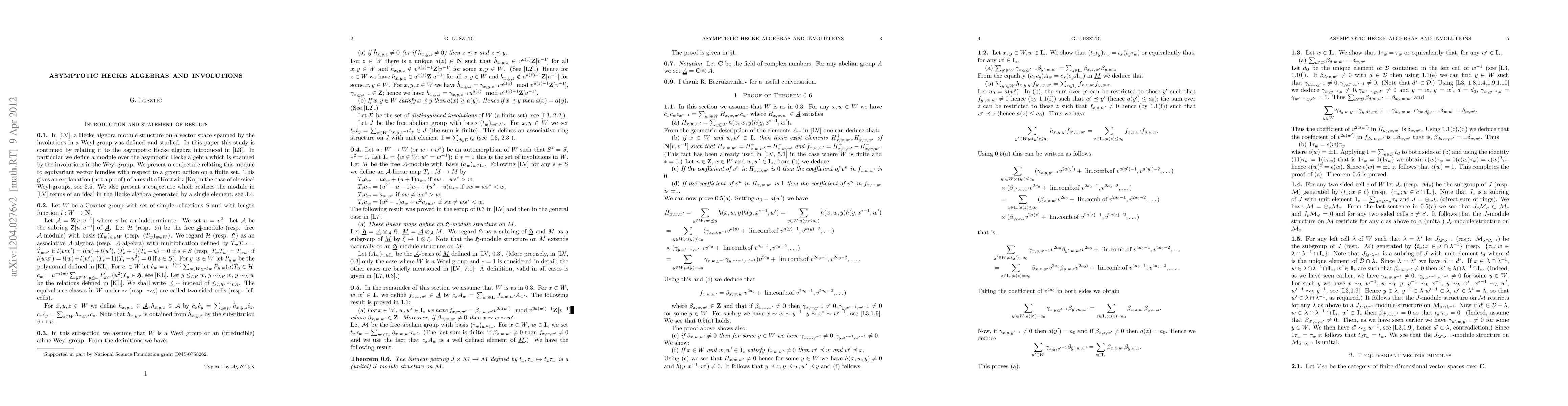 In a previous paper the author and D. Vogan defined and studied a Hecke algebra module structure on a vector space spanned by the involutions in a Weyl group. In this paper this study is continued by relating it to the asymptotic Hecke algebra.