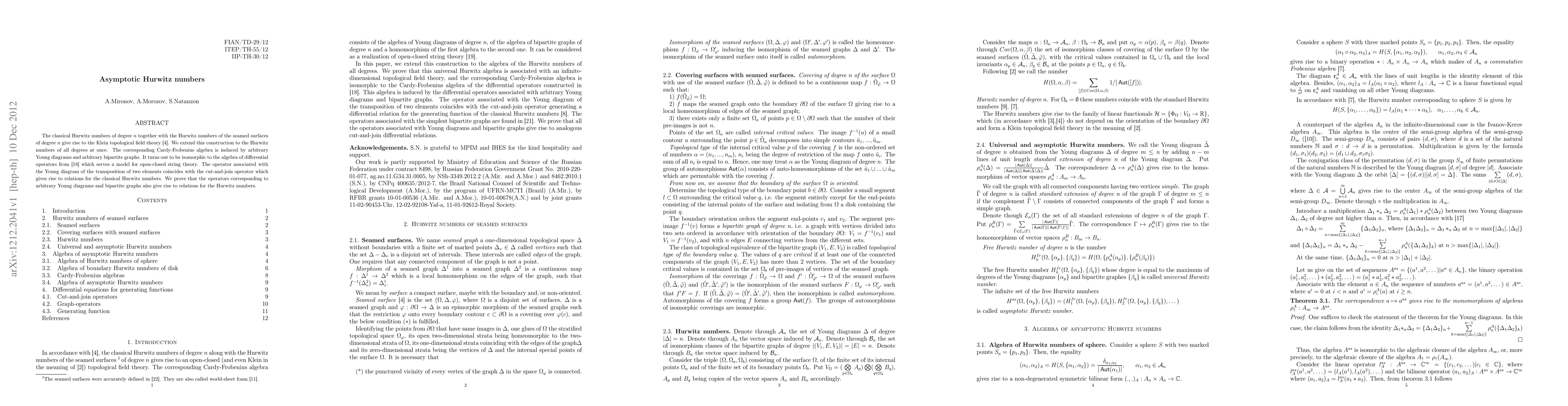 The classical Hurwitz numbers of degree n together with the Hurwitz numbers of the seamed surfaces of degree n give rise to the Klein topological field theory. We extend this construction to the Hurwitz numbers of all degrees at once. The corresponding Cardy-Frobenius algebra is induced by arbitrary Young diagrams and arbitrary bipartite graphs. It turns out to be isomorphic to the algebra of differential operators from arXiv:1210.6955 which serves a model for open-closed string theory. The operator associated with the Young diagram of the transposition of two elements coincides with the cut-and-join operator which gives rise to relations for the classical Hurwitz numbers. We prove that the operators corresponding to arbitrary Young diagrams and bipartite graphs also give rise to relations for the Hurwitz numbers.